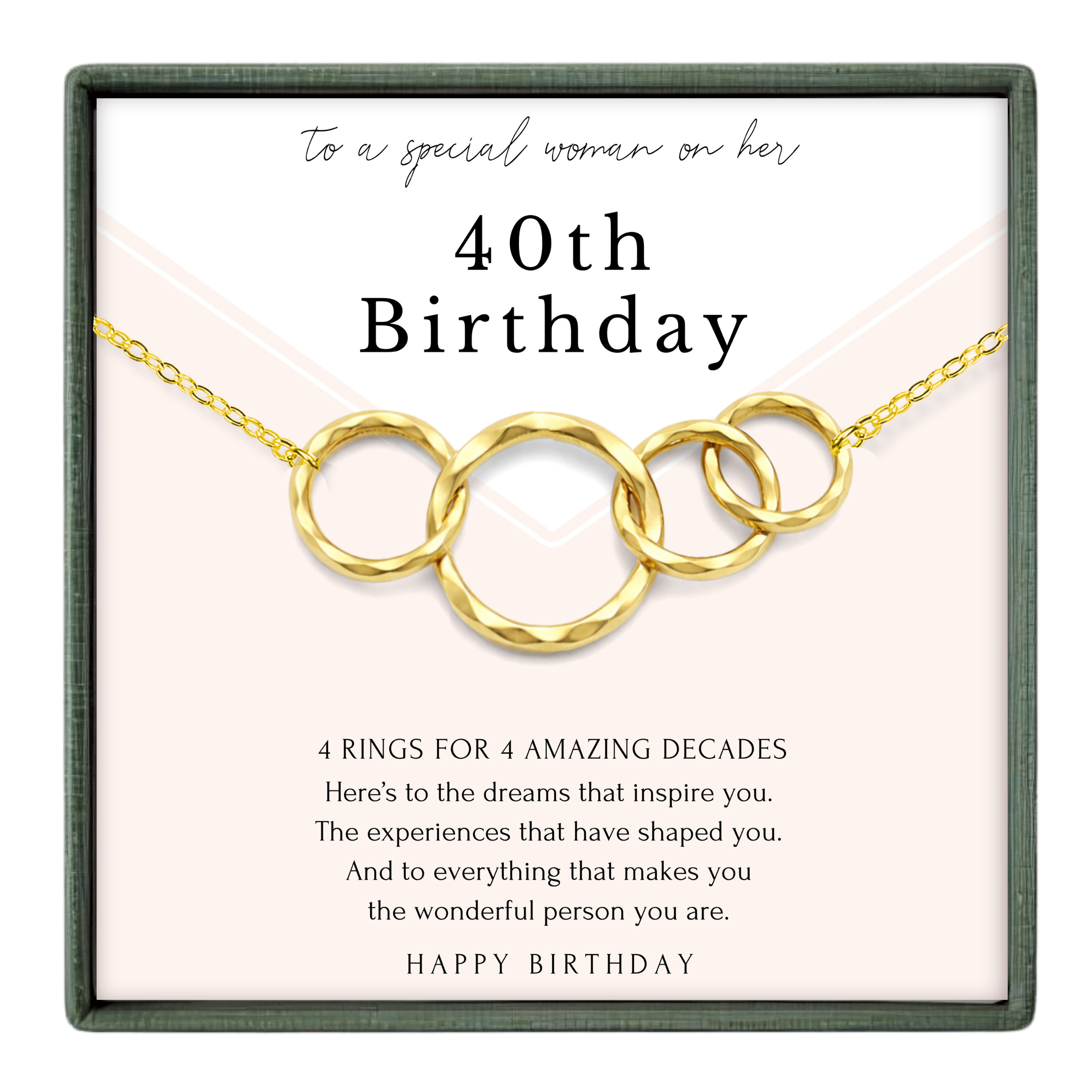 A good friend in your life deserves a 40th birthday gift! Celebrate another 365-day cycle around the sun with a perfect gift for her. Featuring an interlocking circles pendant, representing unity, protection, gratitude, and strength.