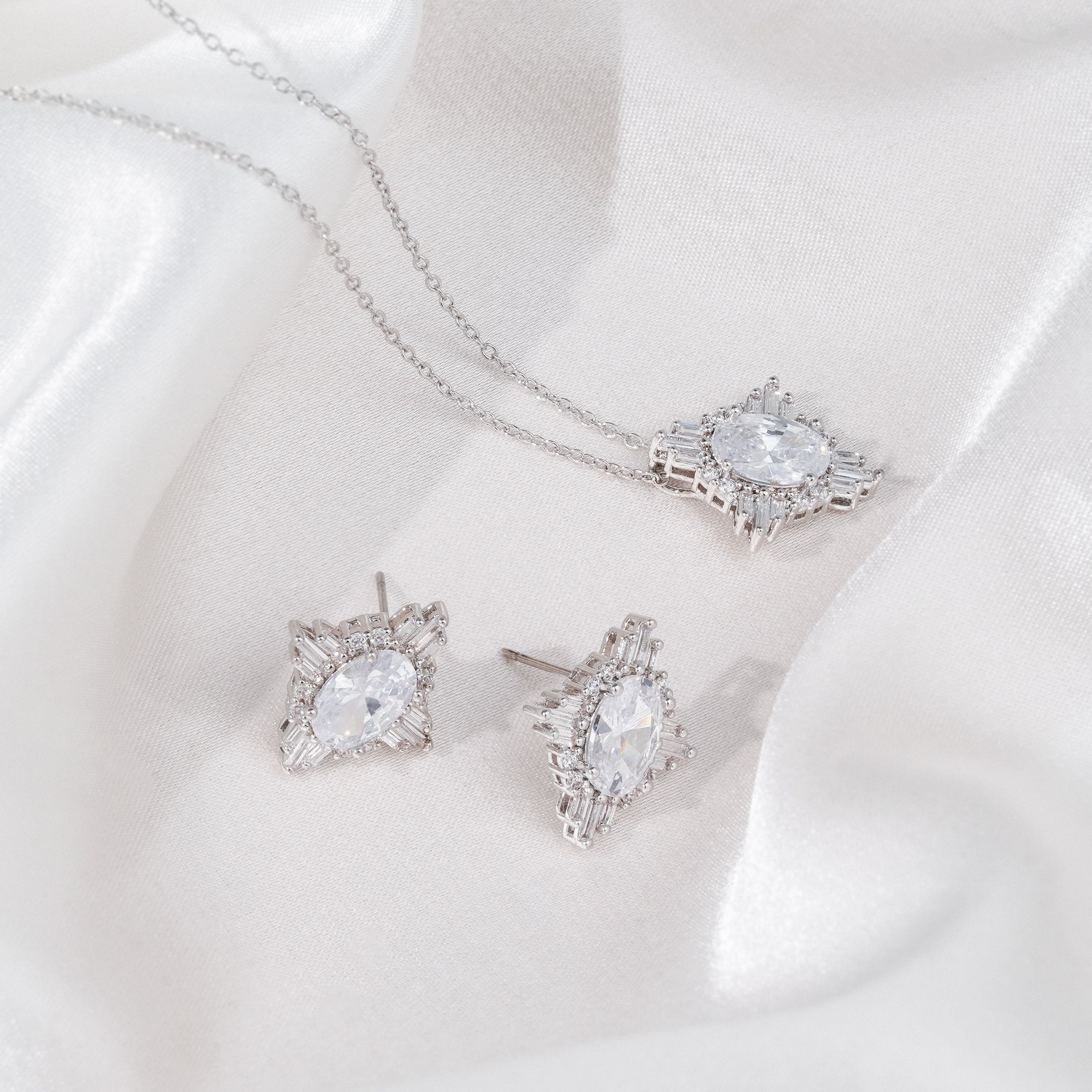Perfect accessories for vintage-style wedding and bridesmaid dresses - from the renaissance to regency eras. Necklace and earring set that will complement materials like silk fabrics, lace, tulle, organza - think silhouettes, frilly frocks, shimmers, beadings, fringes, and appliques.