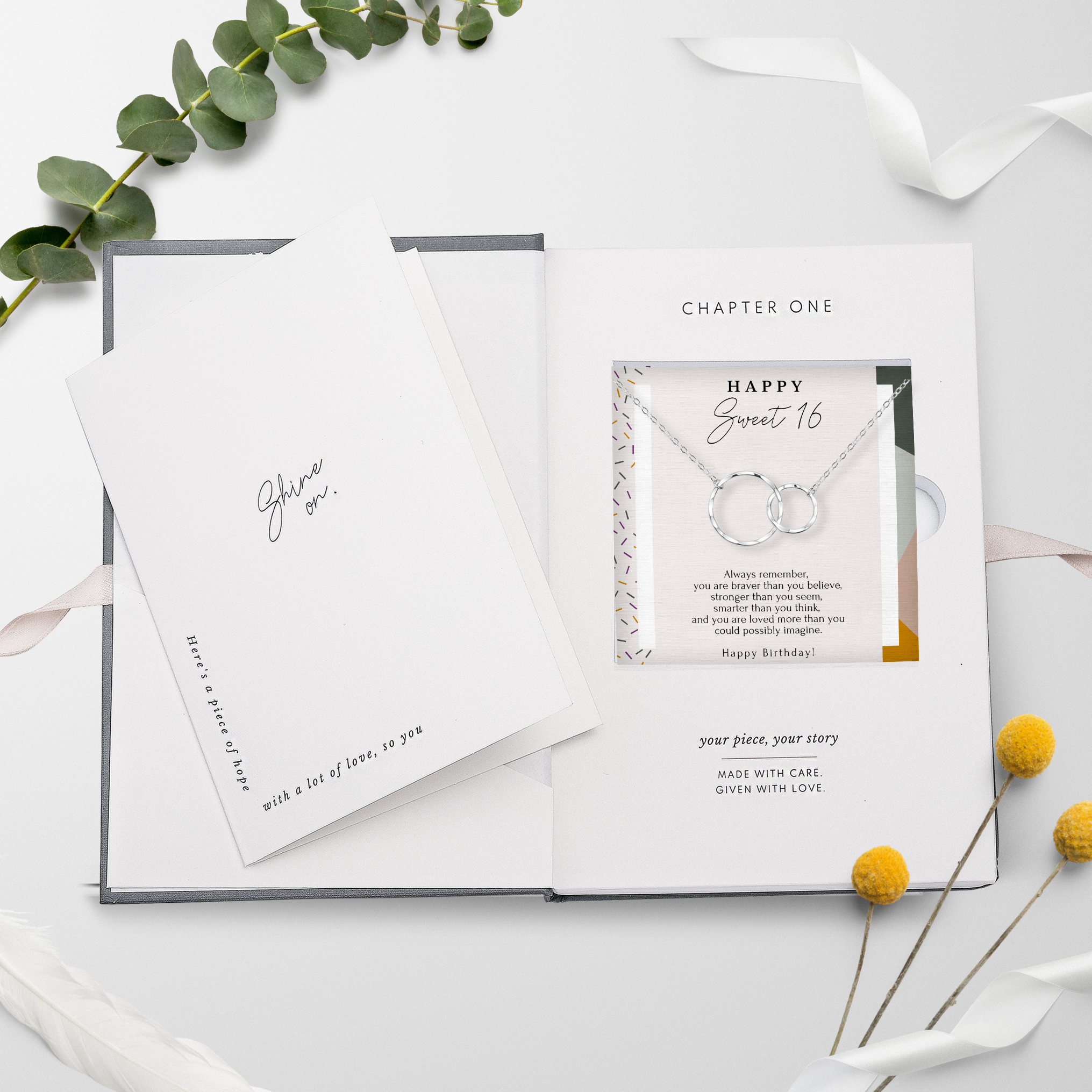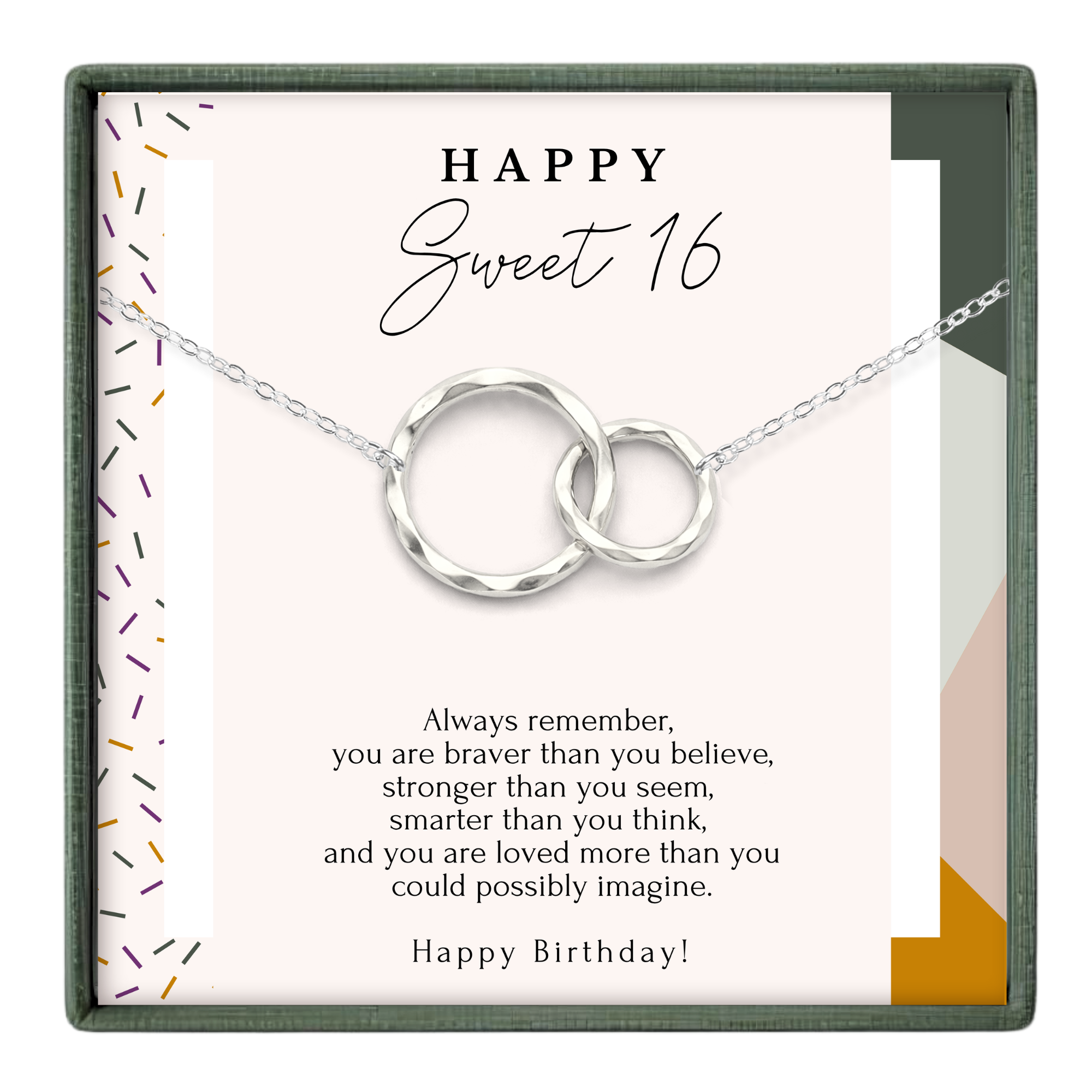 Sweet 16 necklace Silver and Gold gift, Dainty Simple Minimalist double circles necklace in Sterling Silver, 14K Gold vermeil A special birthday girl deserves something beautiful for her birthday! Give her this classic and meaningful necklace, featuring interlocking circles pendant, representing unity, protection, gratitude and strength. A high-quality piece of jewelry for everyday wear.