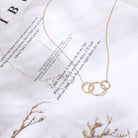 - Necklace is 18” long with adjustable ring at 16”. 3 ring pendant measures 1.2" in width and .65" in height. 2 ring pendants measures 1" in width and 0.65" in height.