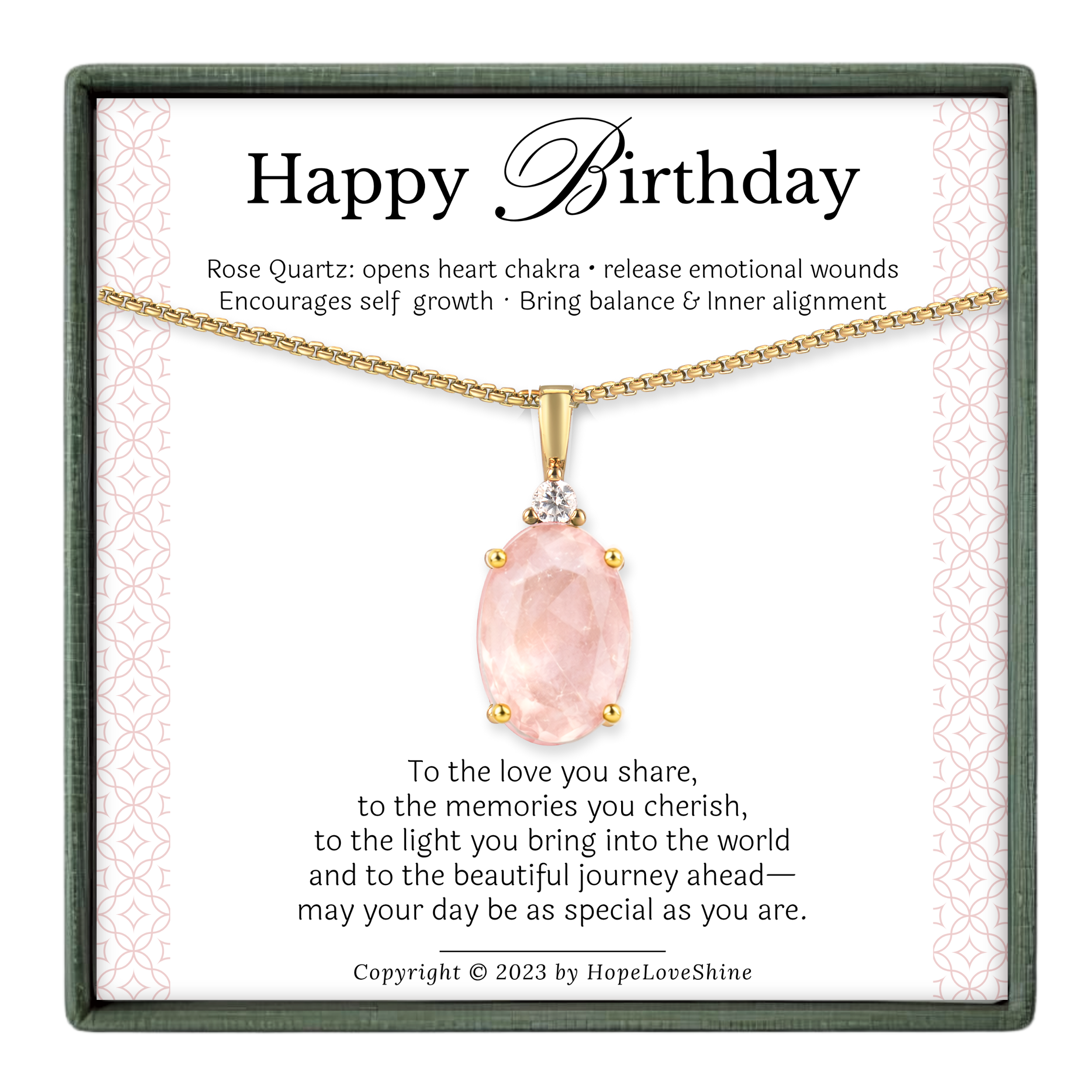 Rose Quartz Necklace – 18K Gold Plated, Birthday Card Gift