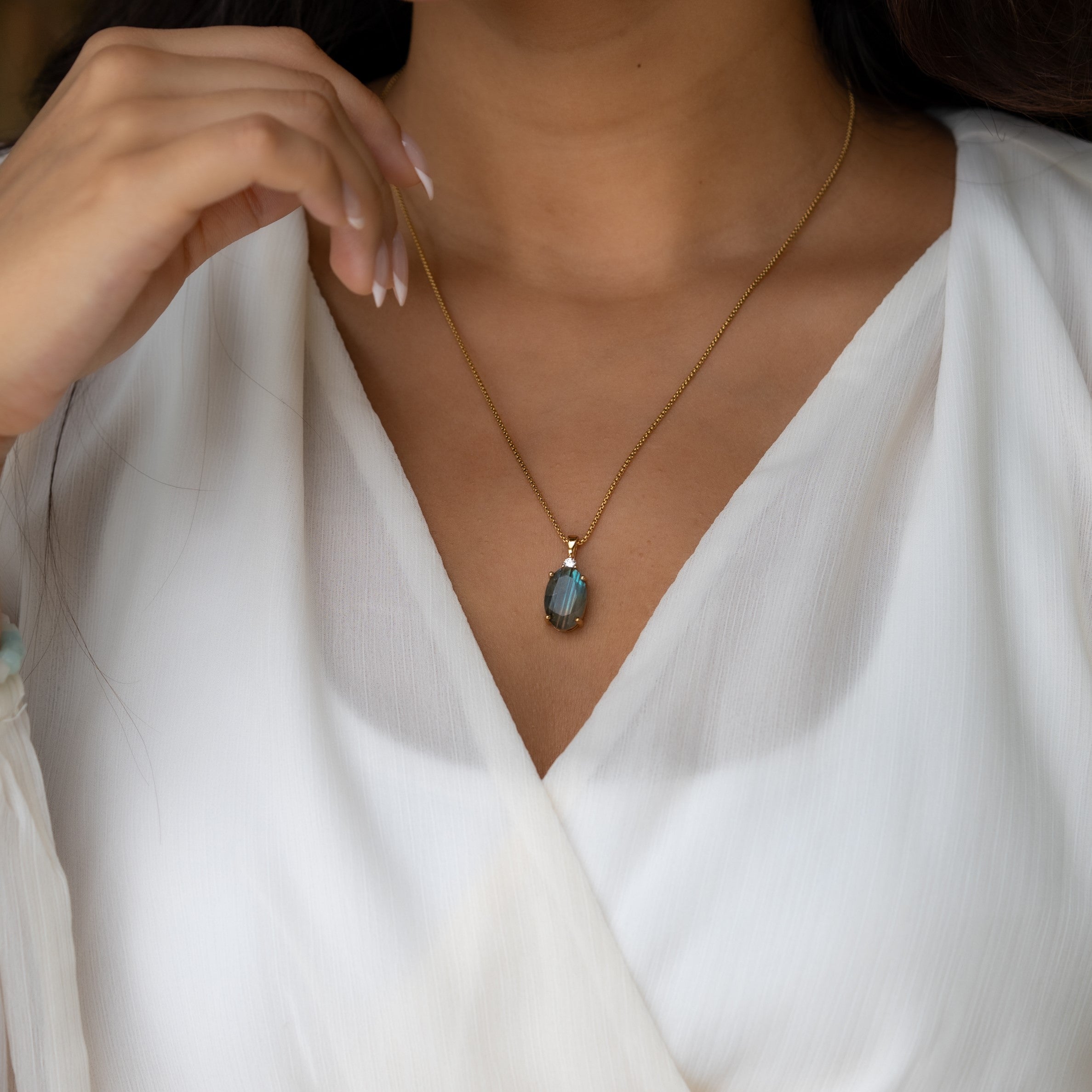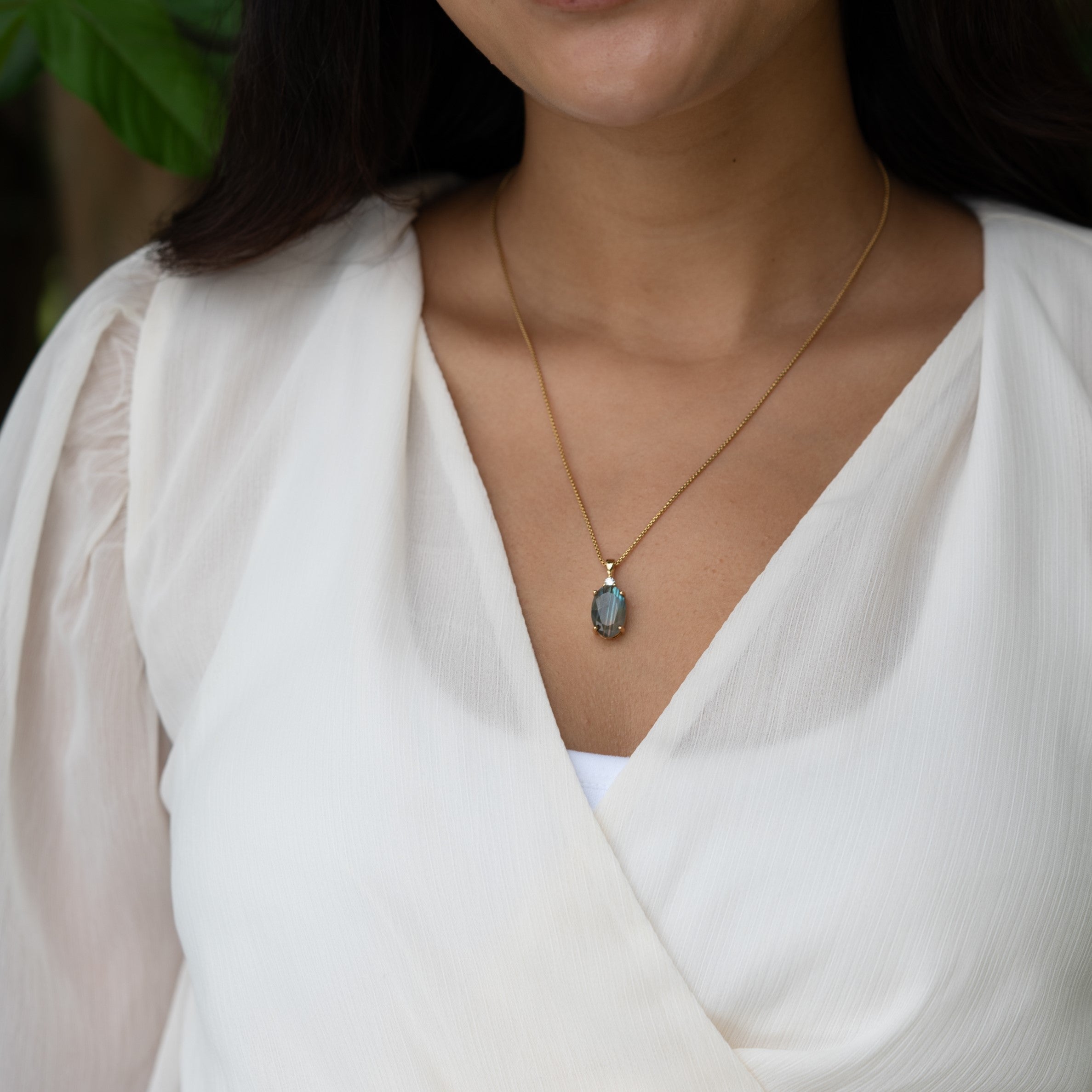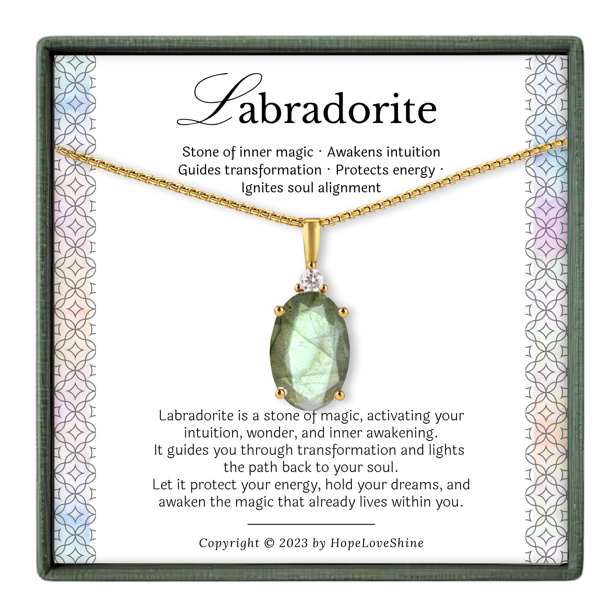 Labradorite Necklace Gold - Spiritual Protection Pendant