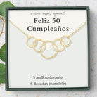 Regalo de 50 cumpleaños para mujer • 5 anillos durante 5 décadas • Joyas de 50 cumpleaños • Collar de regalo para ella