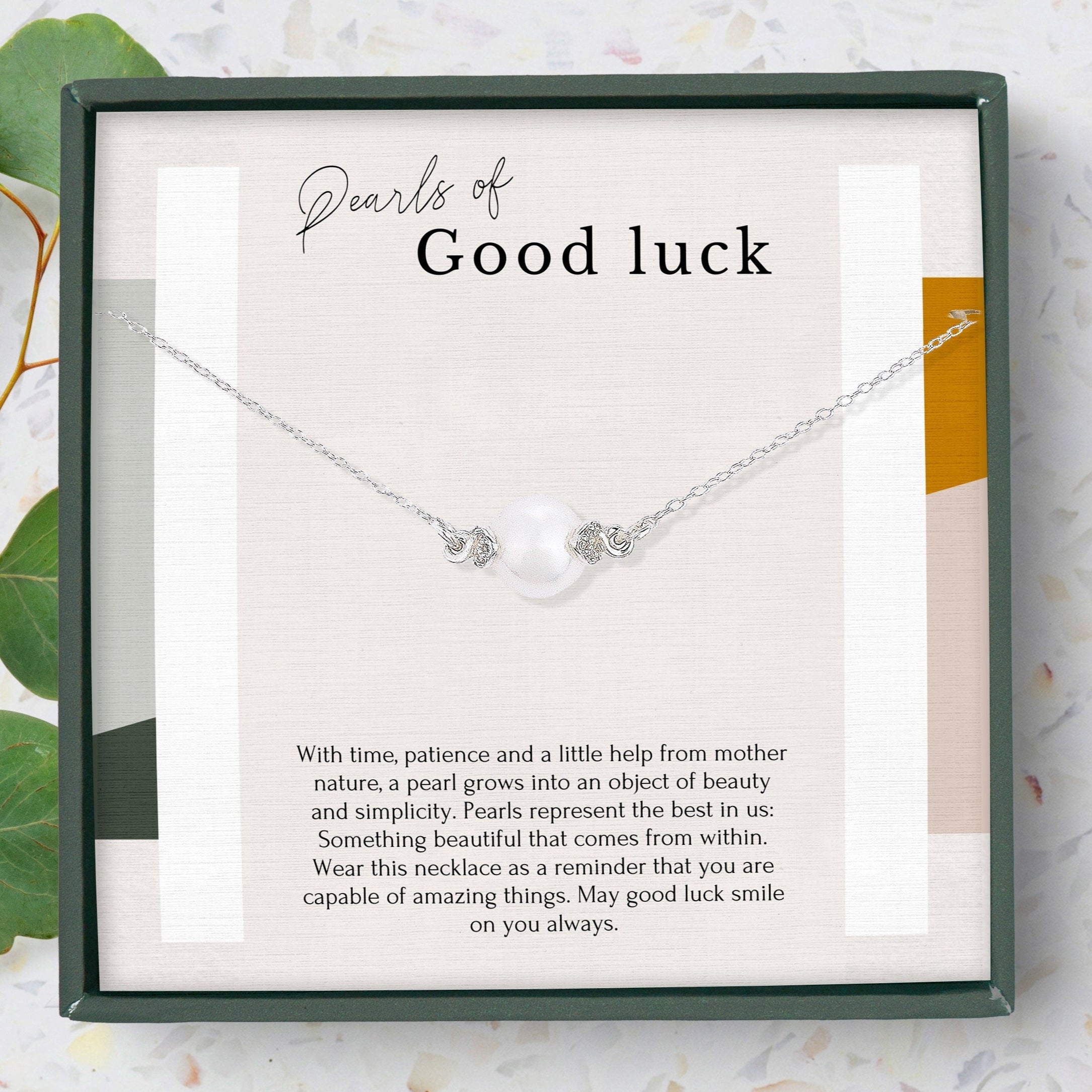 Wish her the best of luck on her next endeavor in life with this dainty good luck pearl necklace. From graduation to moving some place brand new, this beautiful piece of jewelry is a gift she will hold close to her heart as she starts a new chapter. The pearl luster and sparkly chain serves as a good luck token and reminder that positive things are coming. A perfect and encouraging gift for a friend or family member.