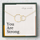Our interlocking circles necklace symbolizes a fresh start and the strength to overcome obstacles. It serves as a constant reminder of strength, courage, and resilience. This necklace makes a perfect encouragement gift for women going through significant life changes.