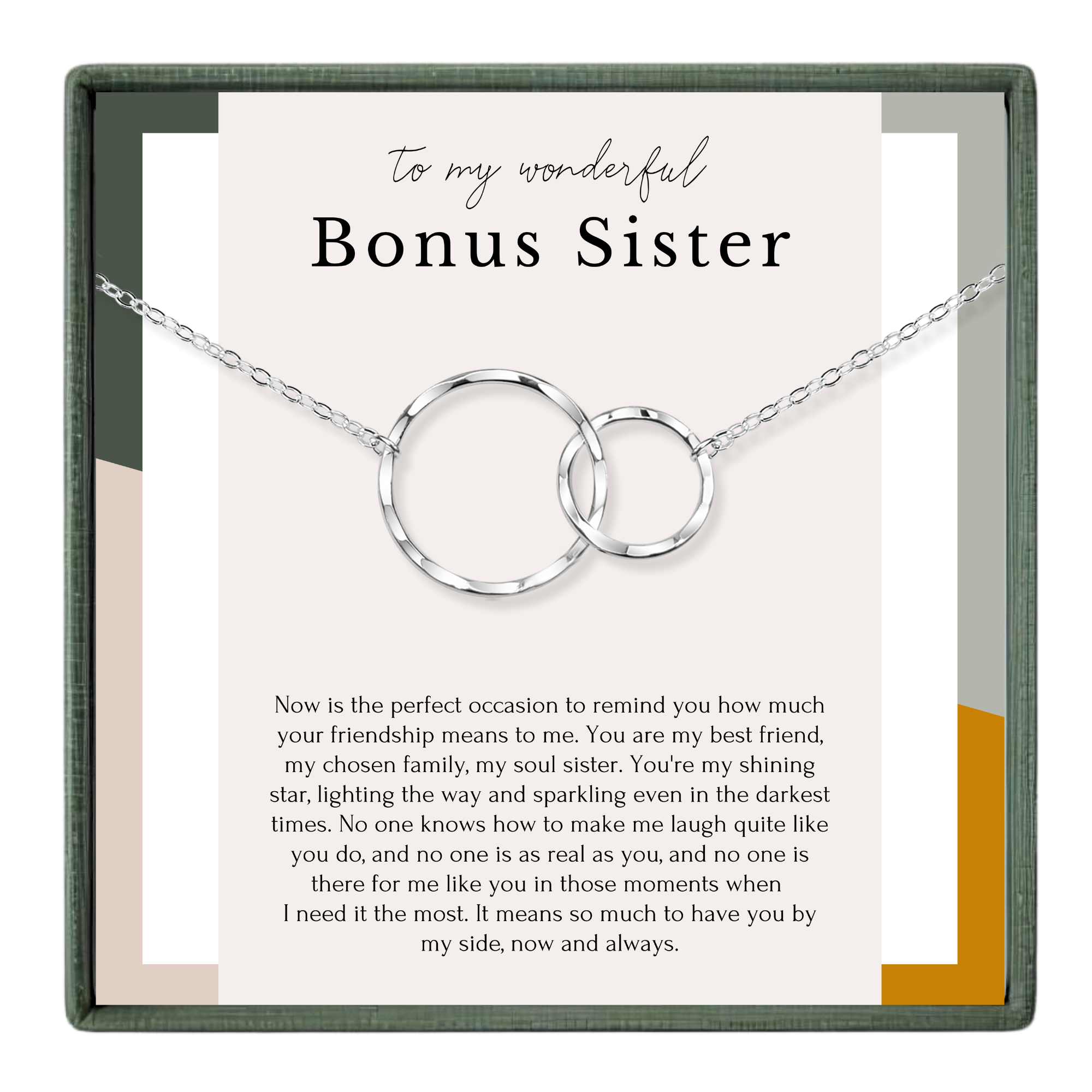 You may not be related by blood, but that doesn't make you any less family. Show your bonus sister how special she is to you with this stunning necklace. Beautifully packaged with a meaningful message, this is a gift she is sure to love. With an option to choose either interlocking circles or a pearl necklace, there is something to fit every style.