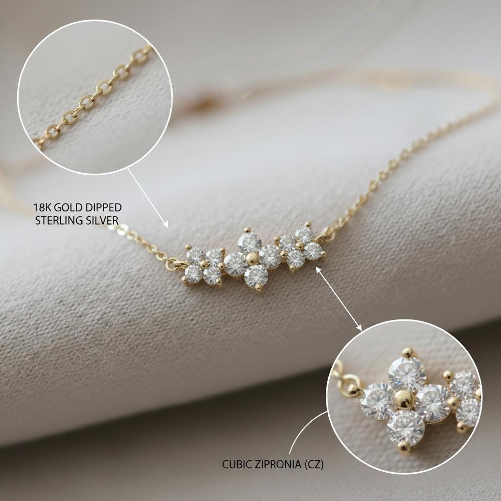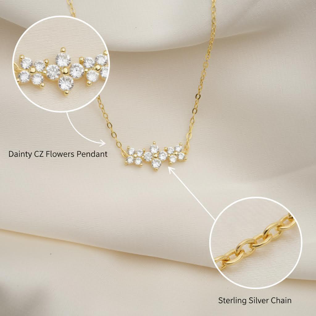 3 Flower Dainty Gold Necklace | Best friend Jewelry Gift for Her Birthday