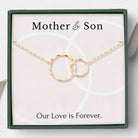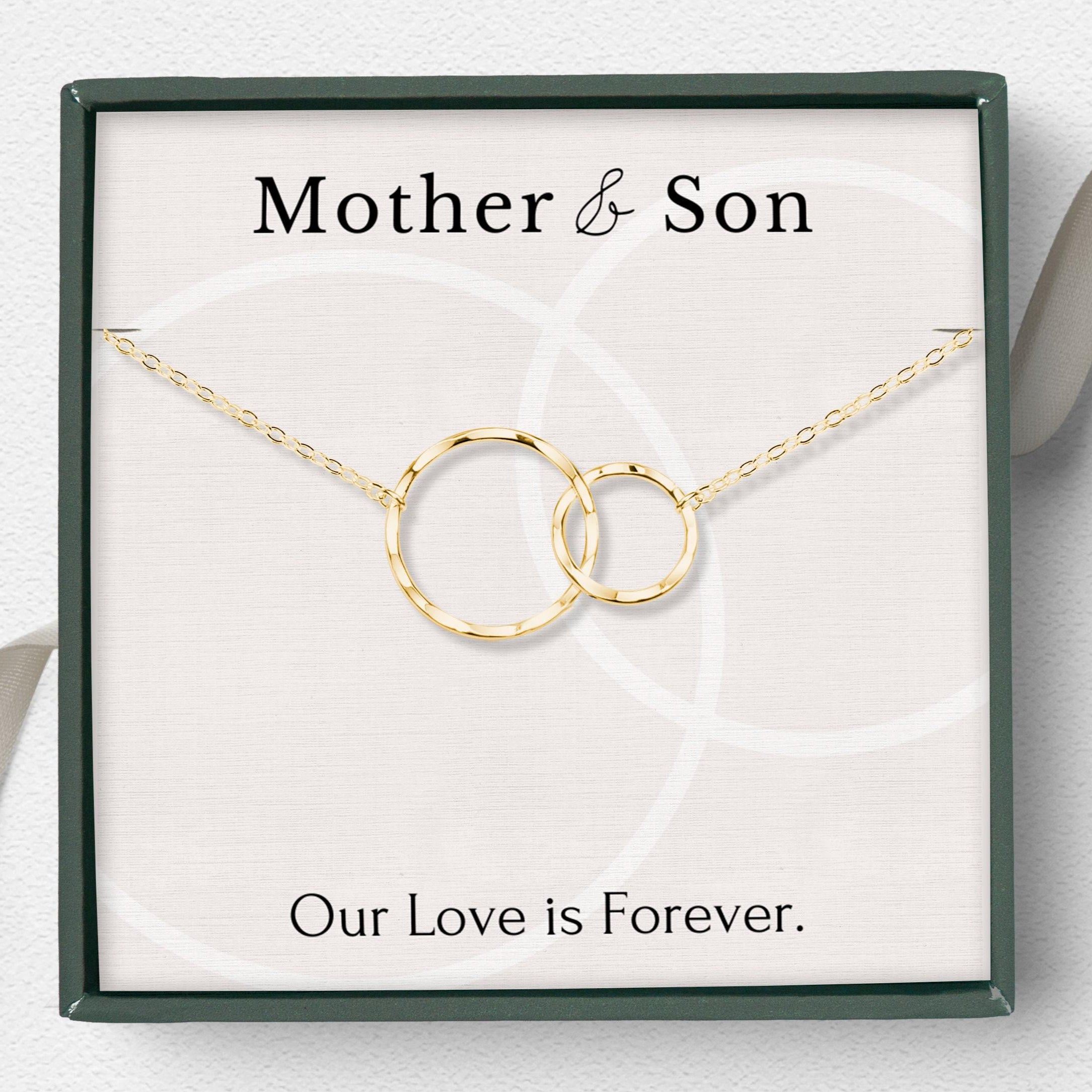 Celebrate the love between a mother and her son with this beautiful interlocking circles necklace.