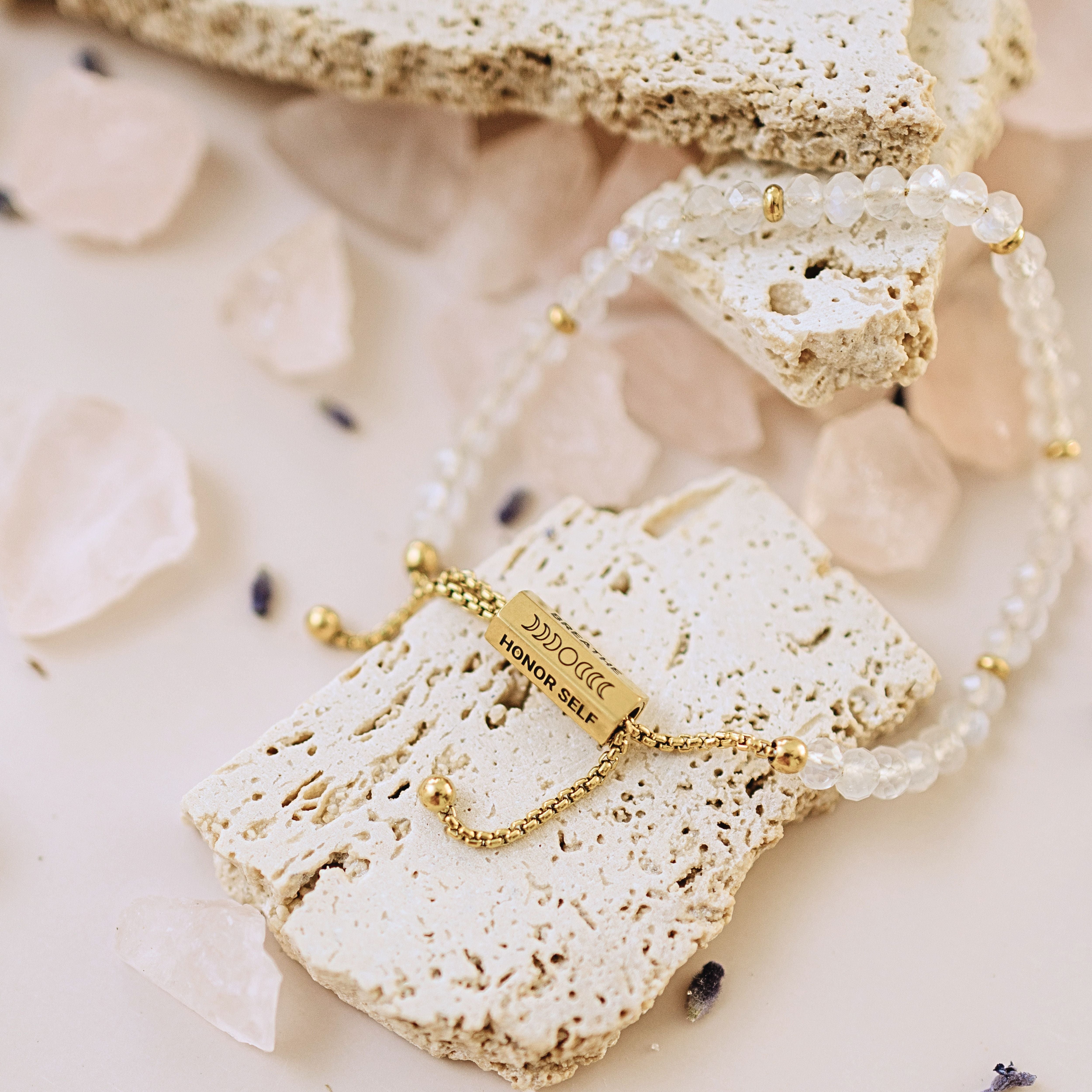 Our moonstone bracelet is made with natural stone and stainless steel. The adjustable design ensures a perfect fit for everyone regardless of wrist size.