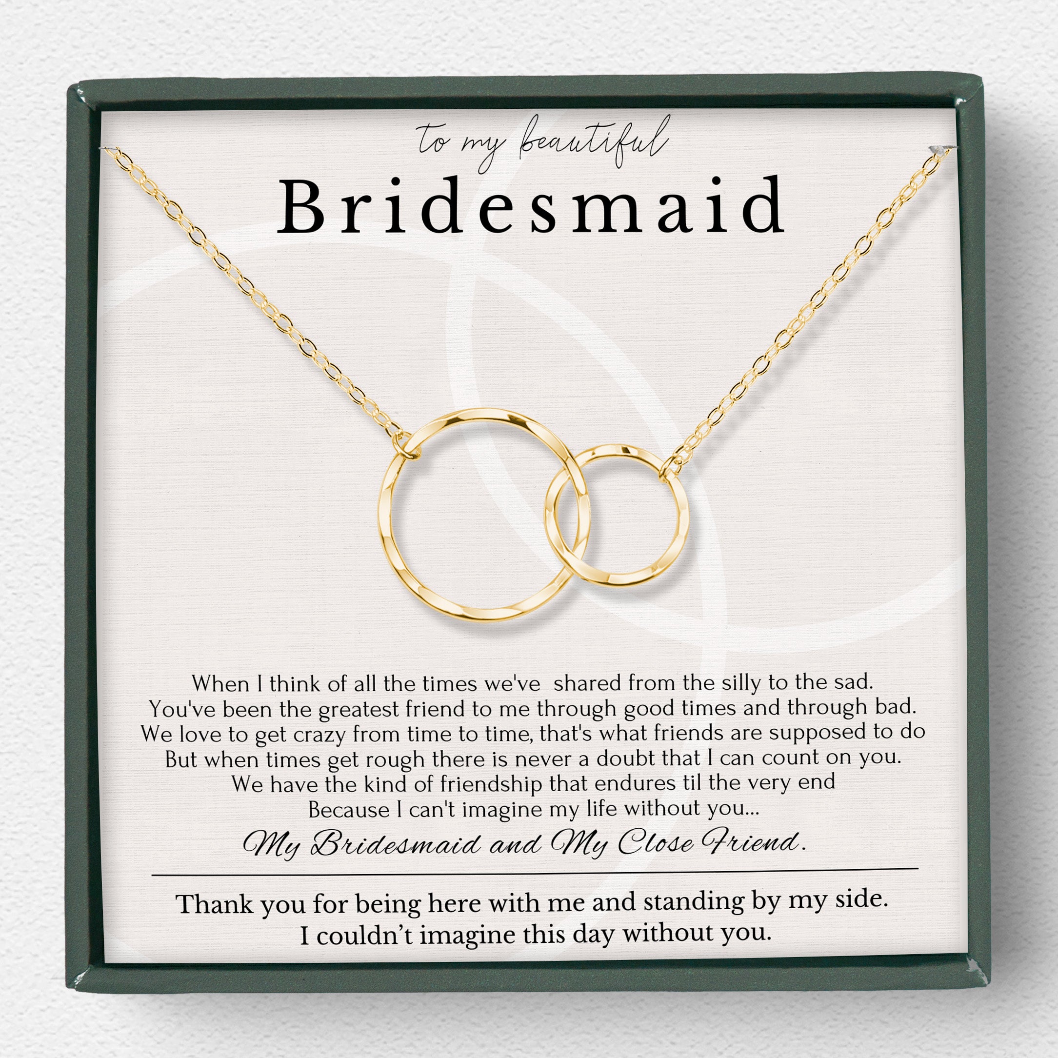 It takes a special person to stand beside you on your wedding day. Show your gratitude with this stunning interlocking circles necklace. Beautifully packaged with a meaningful message, this is a gift she is sure to love.