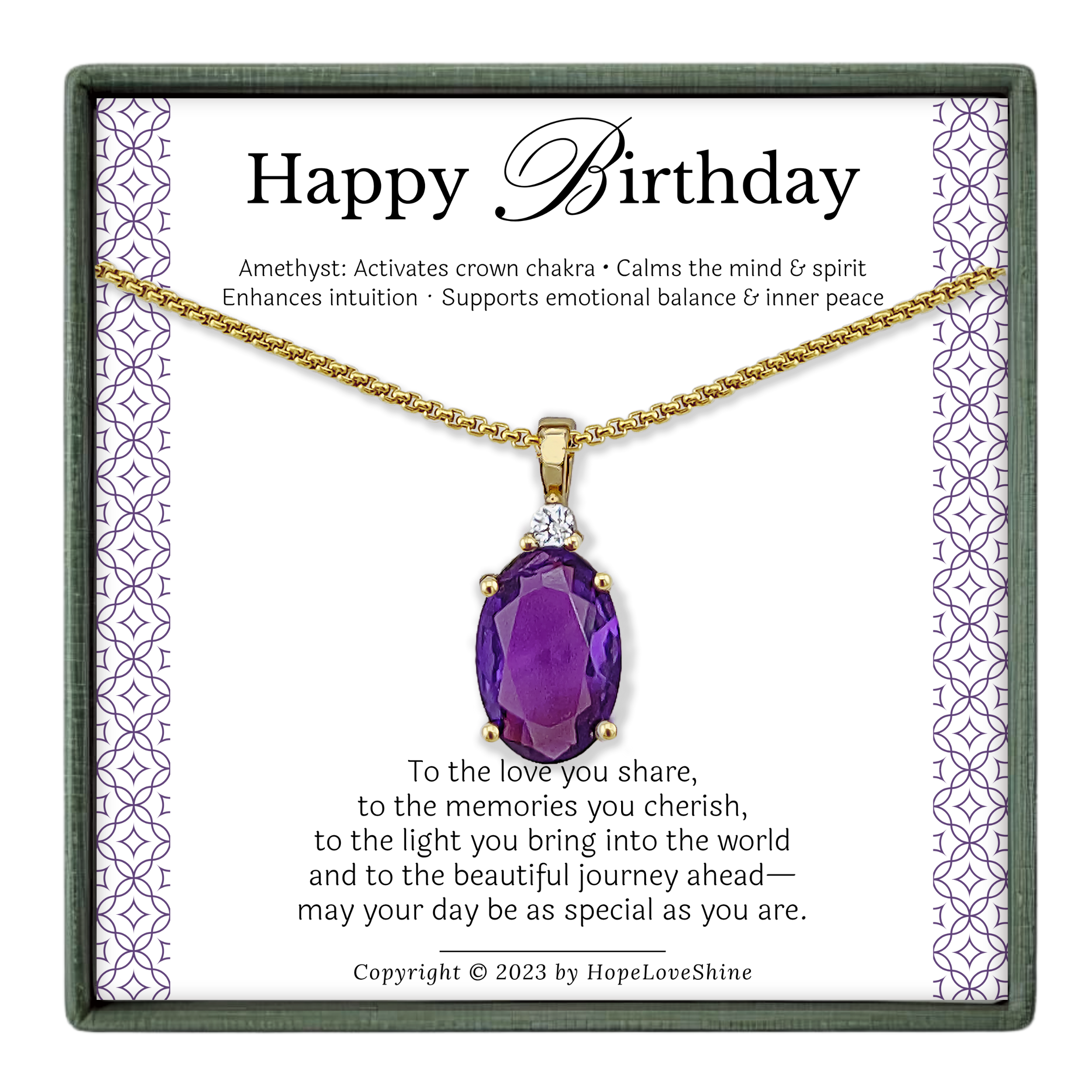 Celebrate her with a gift that brings peace, clarity, and emotional balance. This elegant amethyst necklace is more than just beautiful — it symbolizes calm, intuition, and inner strength. Thoughtfully paired with a heartfelt birthday card, it's a meaningful way to honor the light she brings into the world.
