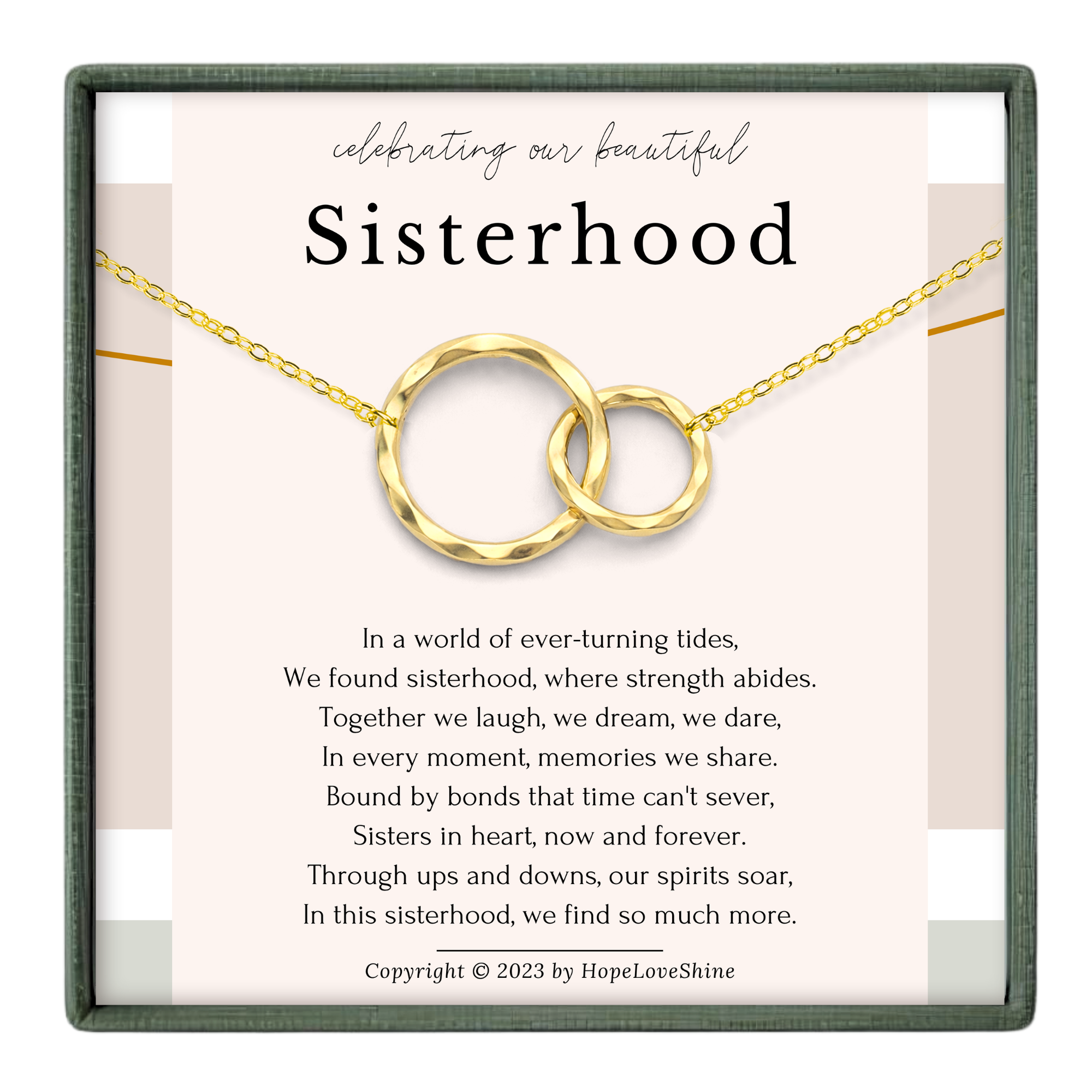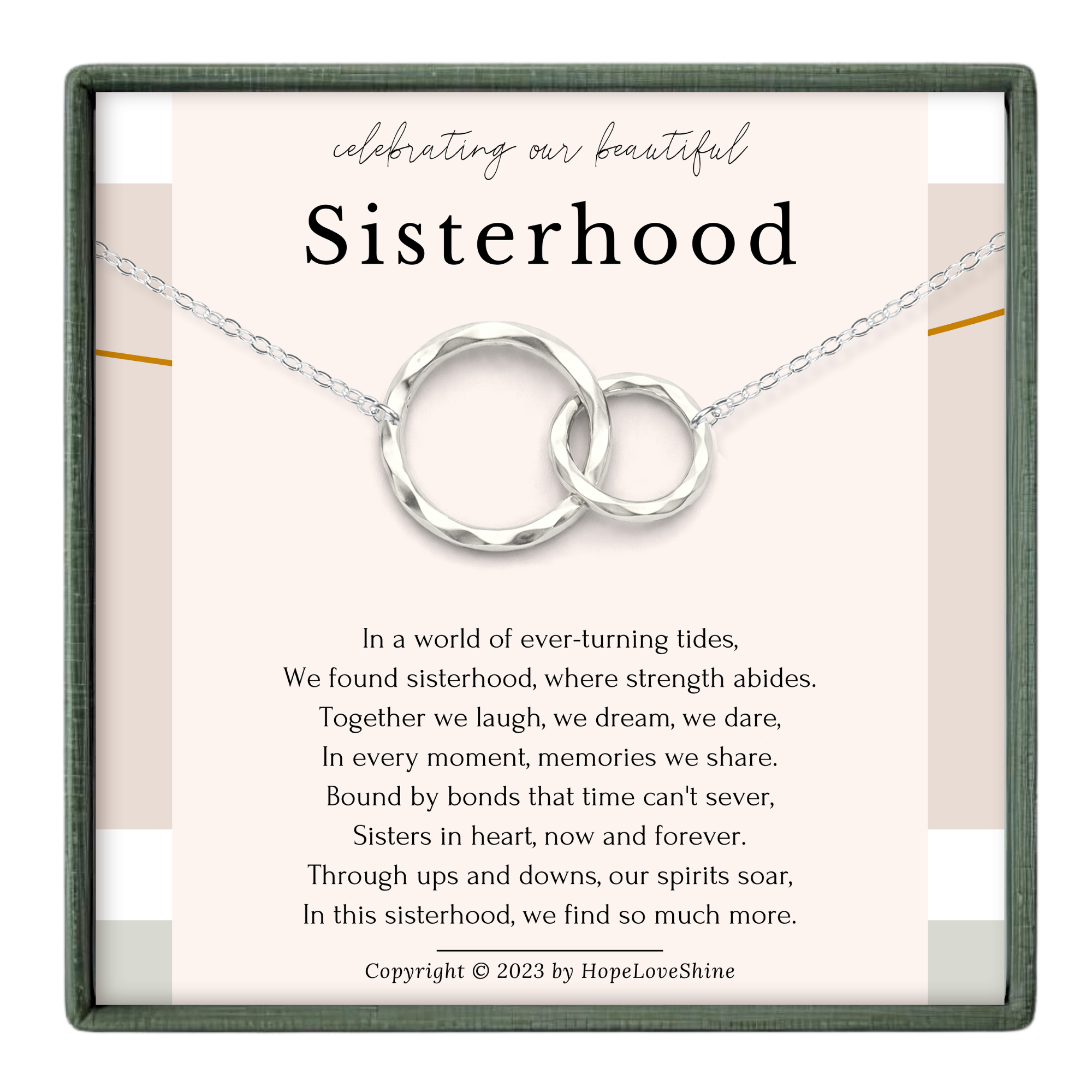Celebrate the bond you share with a meaningful piece that honors sisterhood. This thoughtfully designed necklace serves as a beautiful reminder of the strength, loyalty, and love that define your connection. Perfect for expressing gratitude to a sister, best friend, or cherished companion, it's a wearable symbol of appreciation that she'll treasure. Whether marking a special milestone or simply saying "you matter," this necklace carries a message of support and solidarity. A gift that speaks to the heart and strengthens the ties that bind.