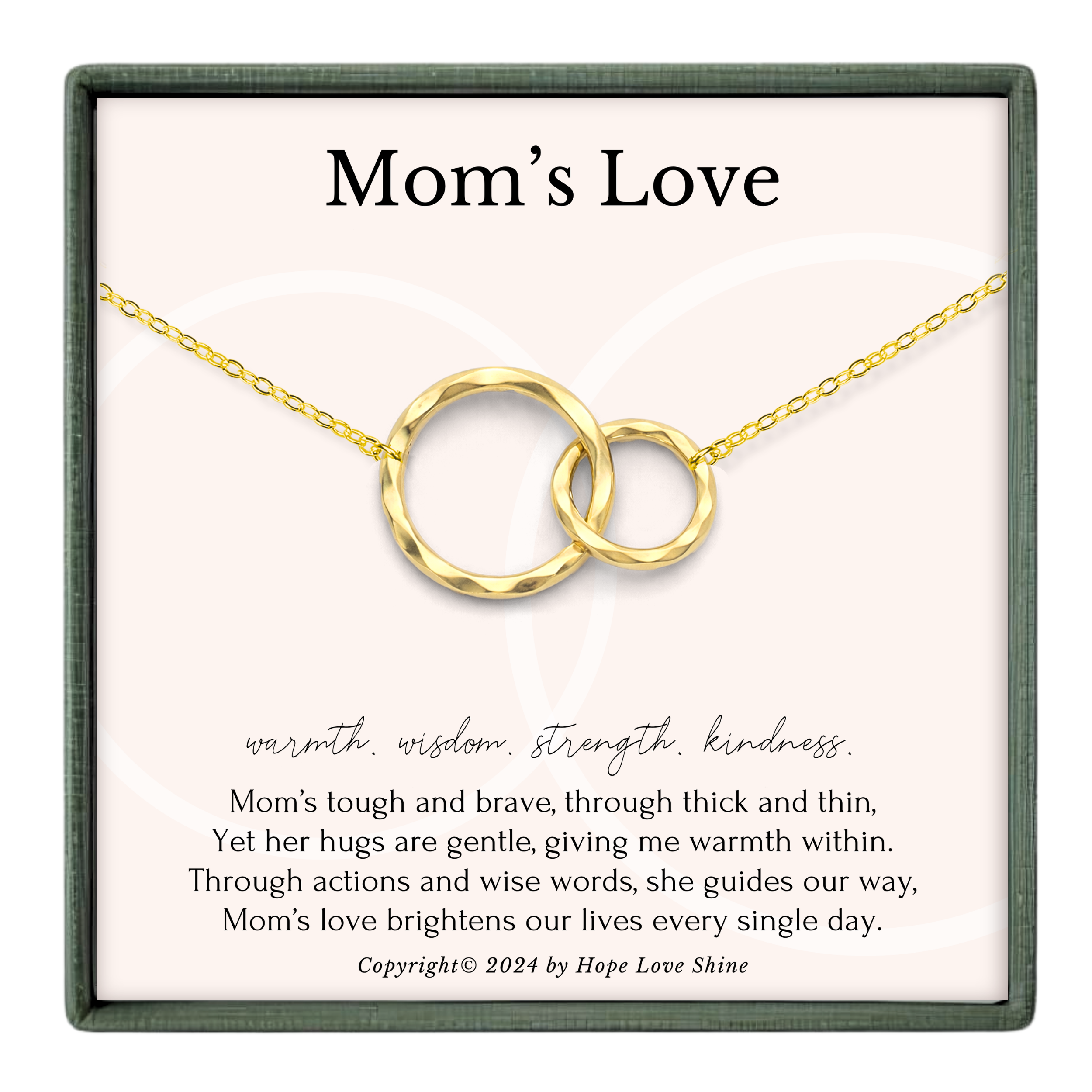 💖 Celebrate the Strength & Warmth of a Mother’s Love with this elegant Mom’s Love Necklace. Featuring two interlocking circles, this necklace symbolizes the unbreakable bond between you and your mother—endless, strong, and filled with love.