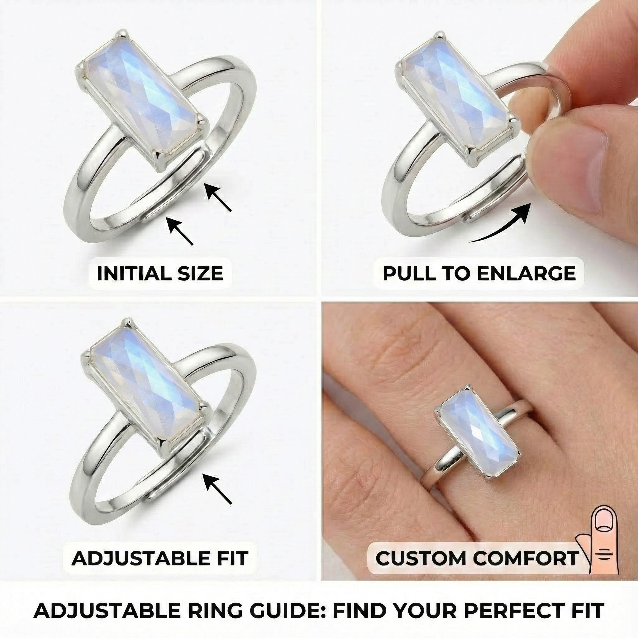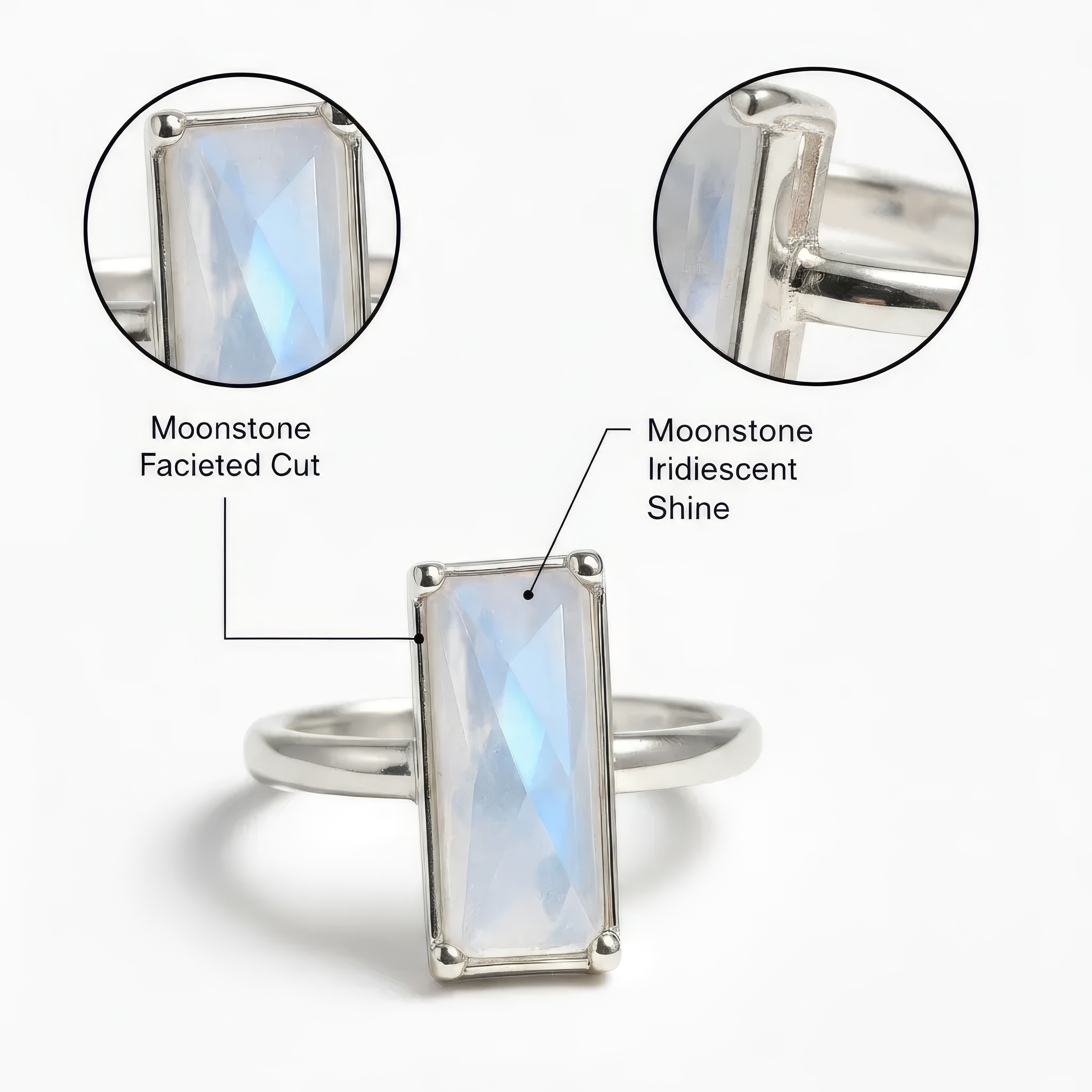 Rainbow Moonstone Ring Silver | Faceted Rectangular Cut | June Birthstone Jewelry for Her