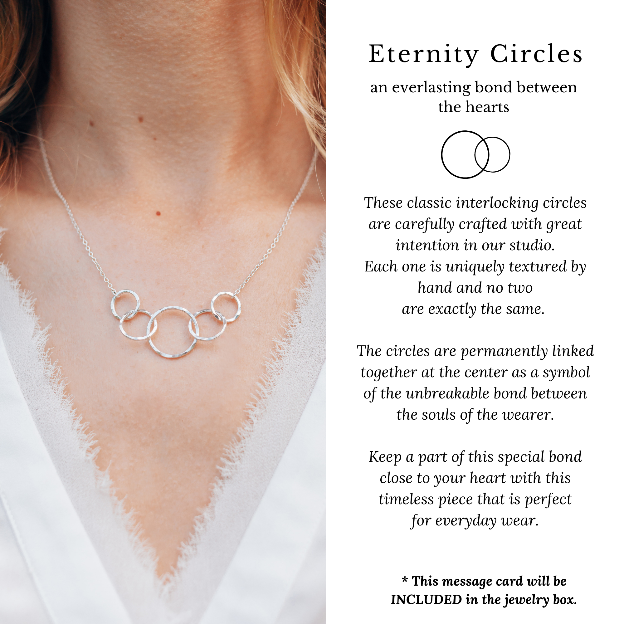 ¡Una buena amiga en tu vida se merece algo bonito para su cumpleaños! Celebre otro ciclo de 365 días alrededor del sol con un regalo perfecto para ella. Con colgante de círculos entrelazados, que representa la unidad, la protección, la gratitud y la fuerza. Una joya de alta calidad para el uso diario. Un collar que atesorará durante muchos años.