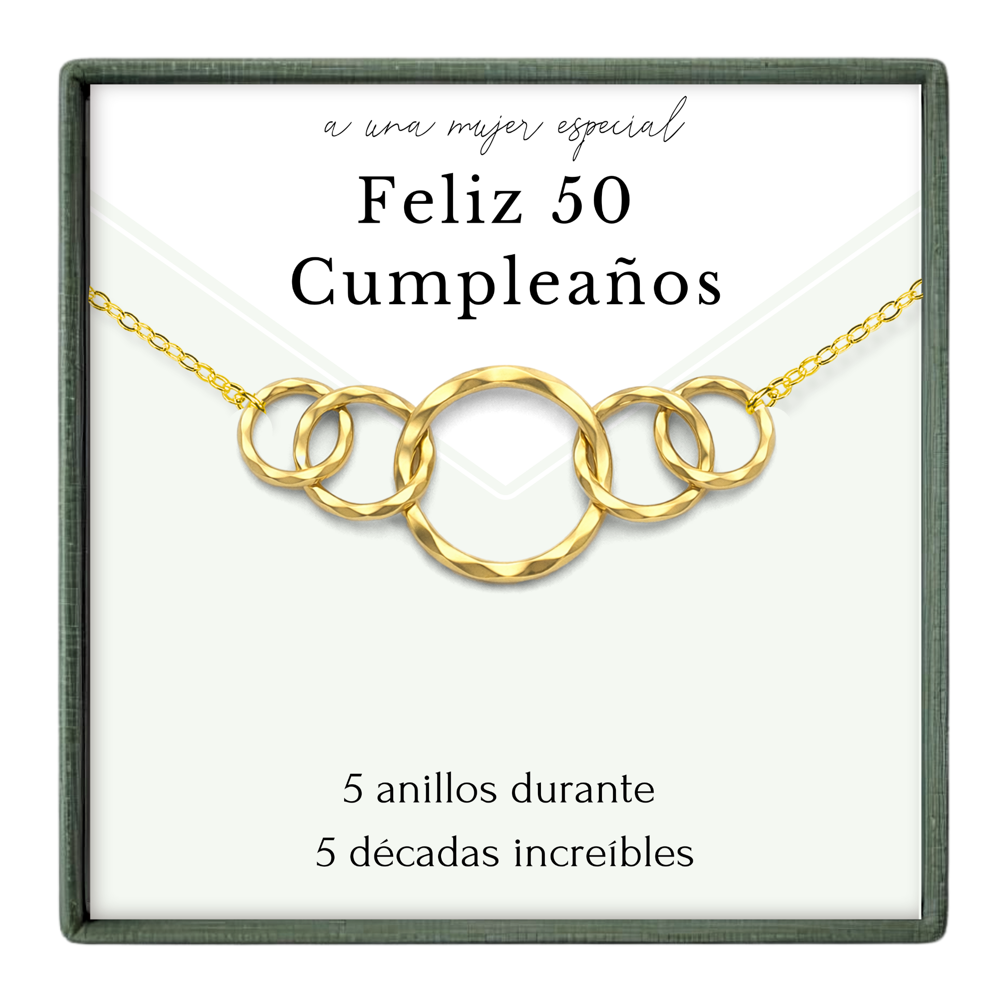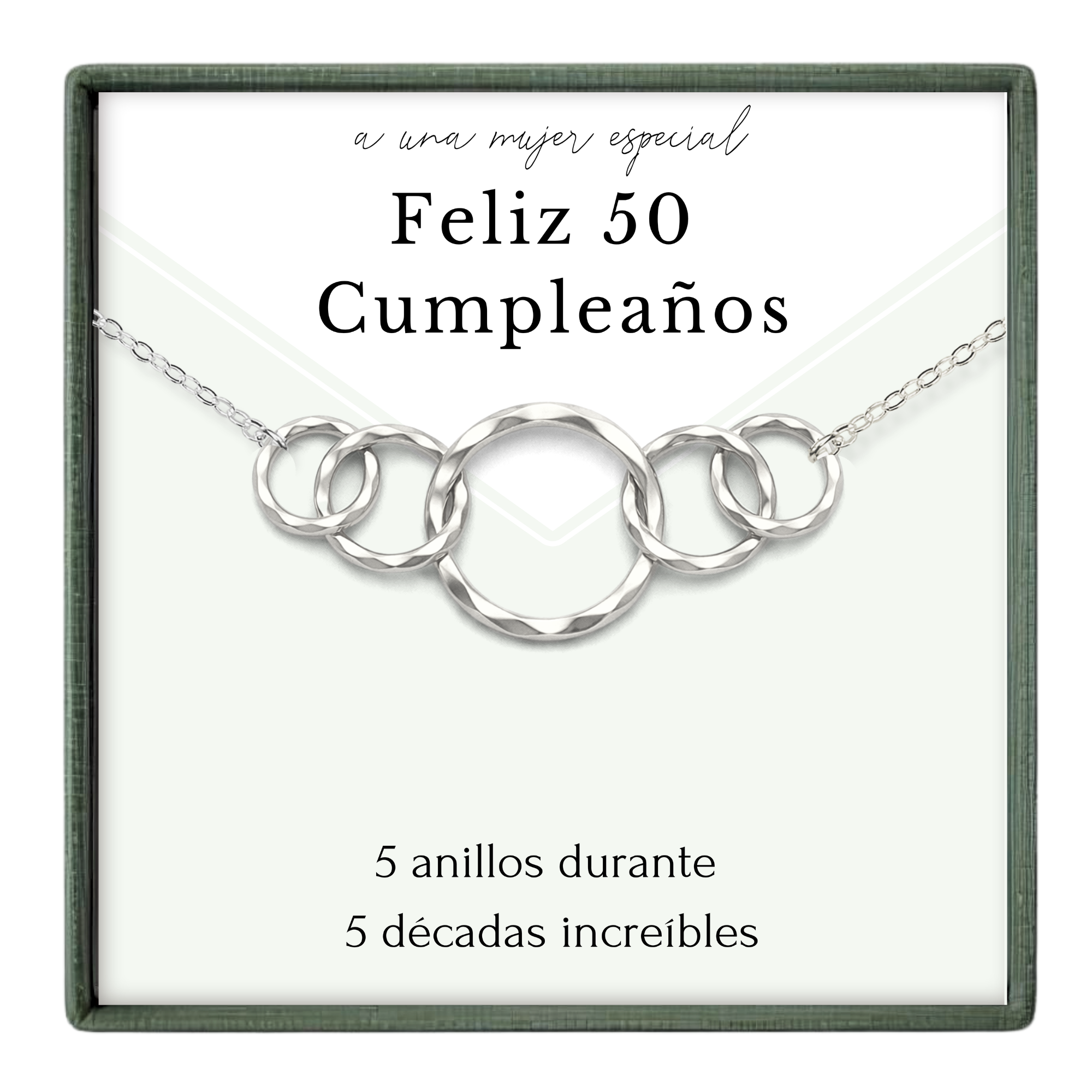 Regalo de 50 cumpleaños para mujer • 5 anillos durante 5 décadas • Joyas de 50 cumpleaños • Collar de regalo para ella
