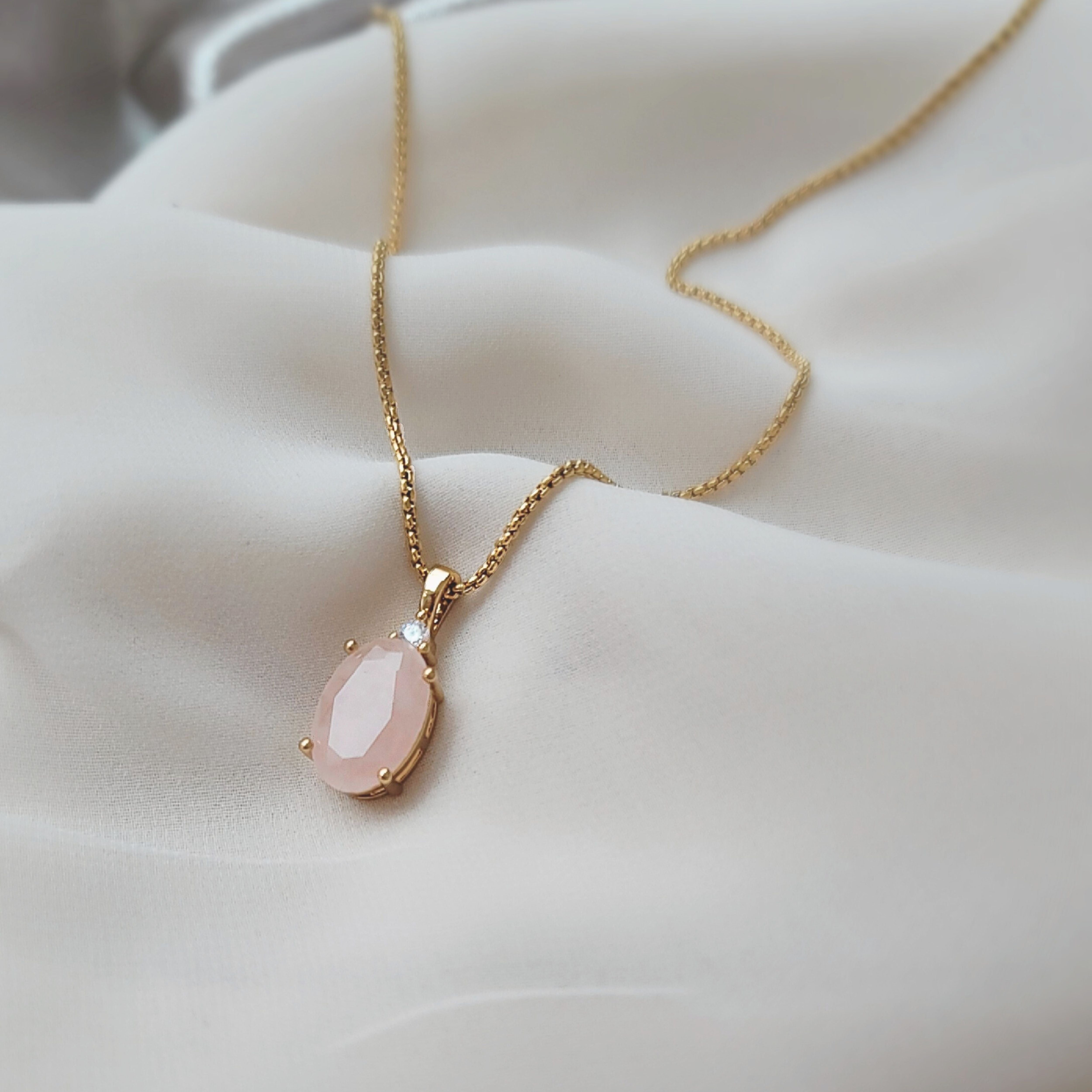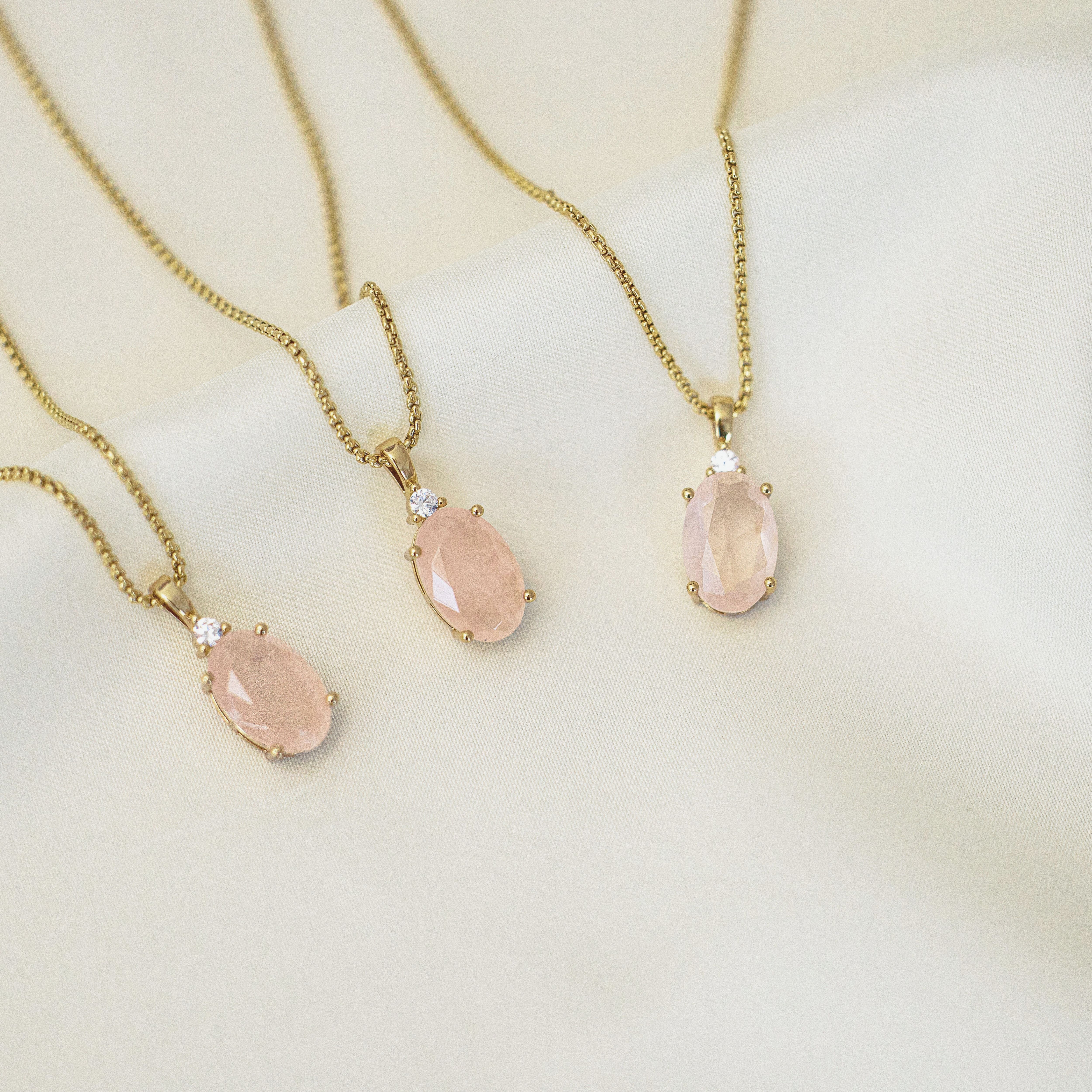 Rose Quartz Necklace Gold – Anniversary Gift for Wife