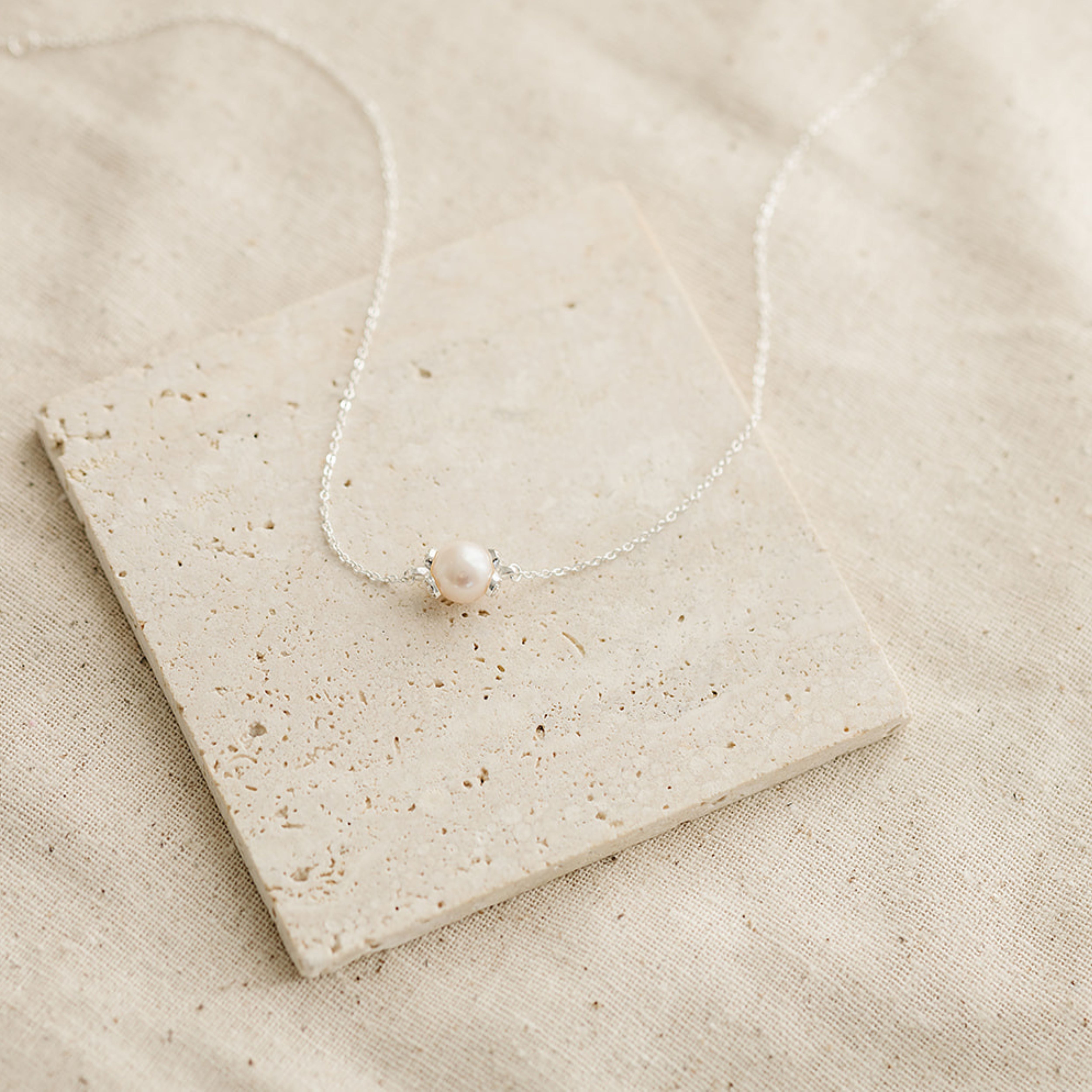 Sterling Silver Pearl Necklace - Birthday Gift for Her