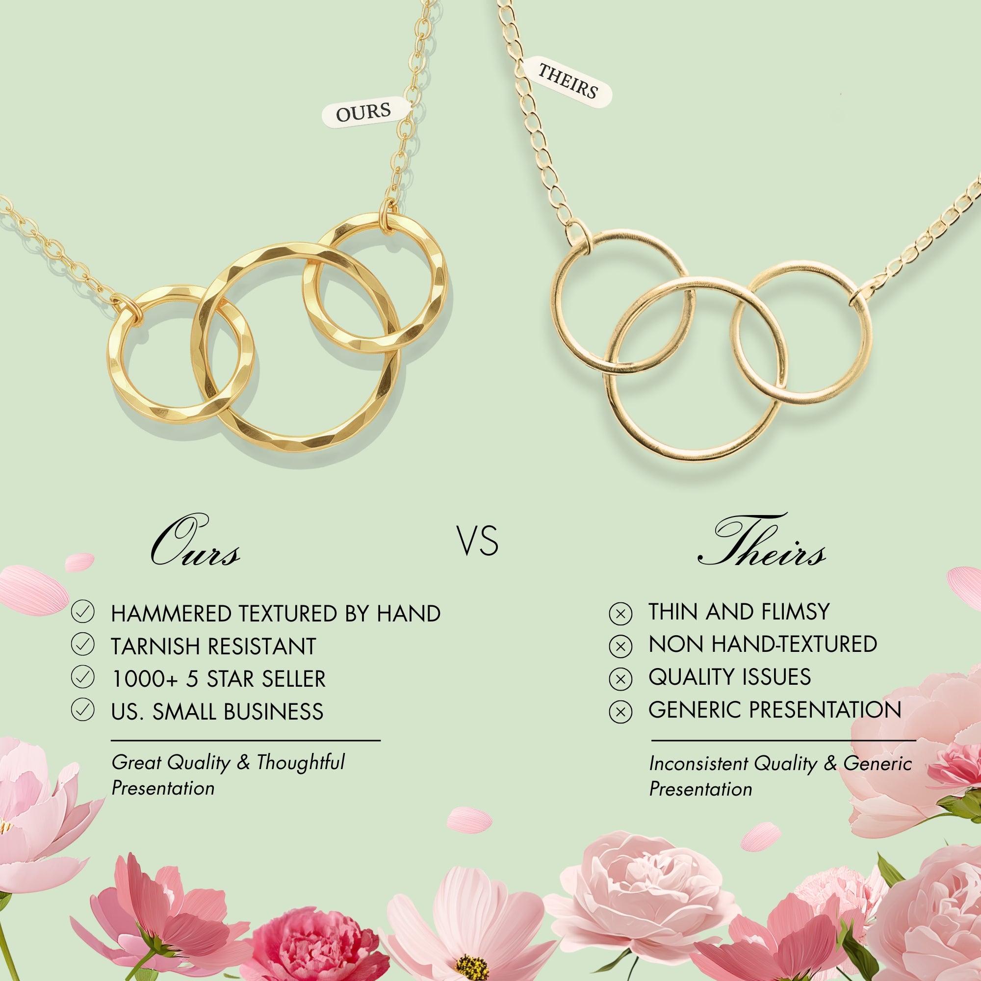 - Necklace is 18” long with adjustable ring at 16”.