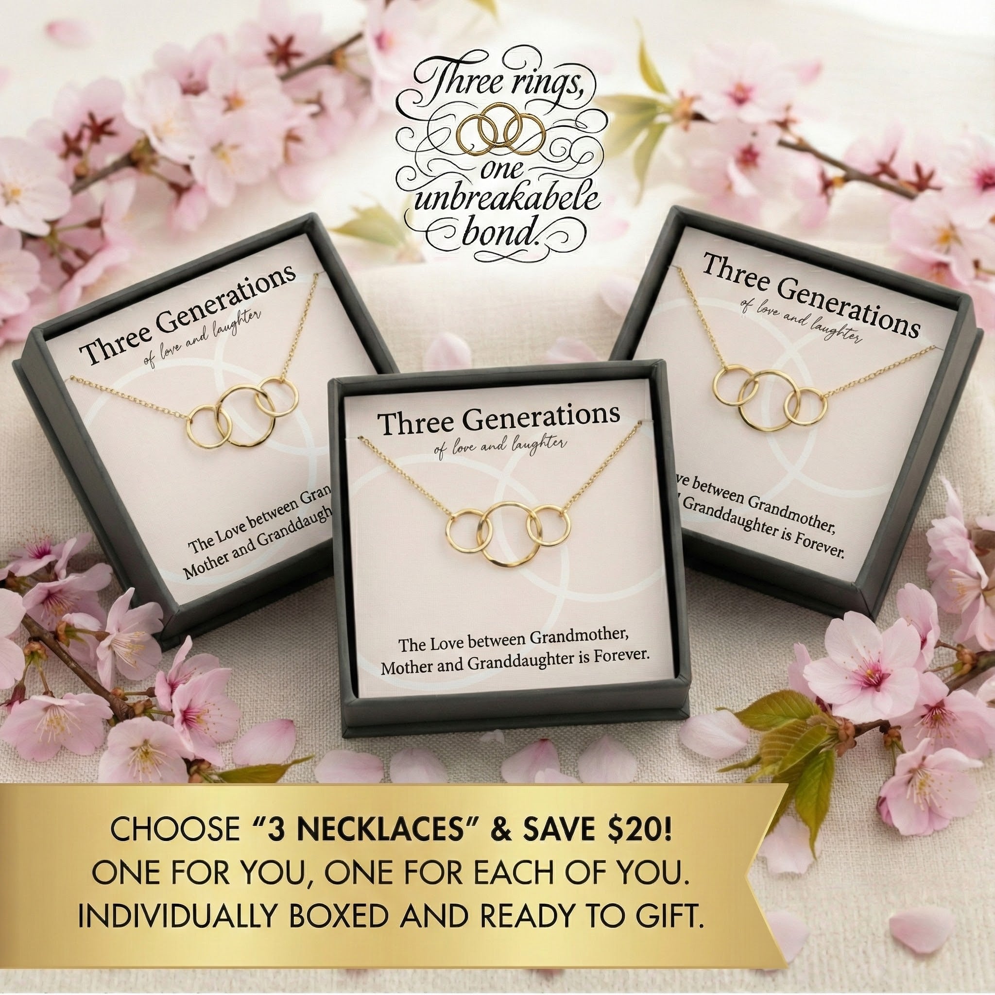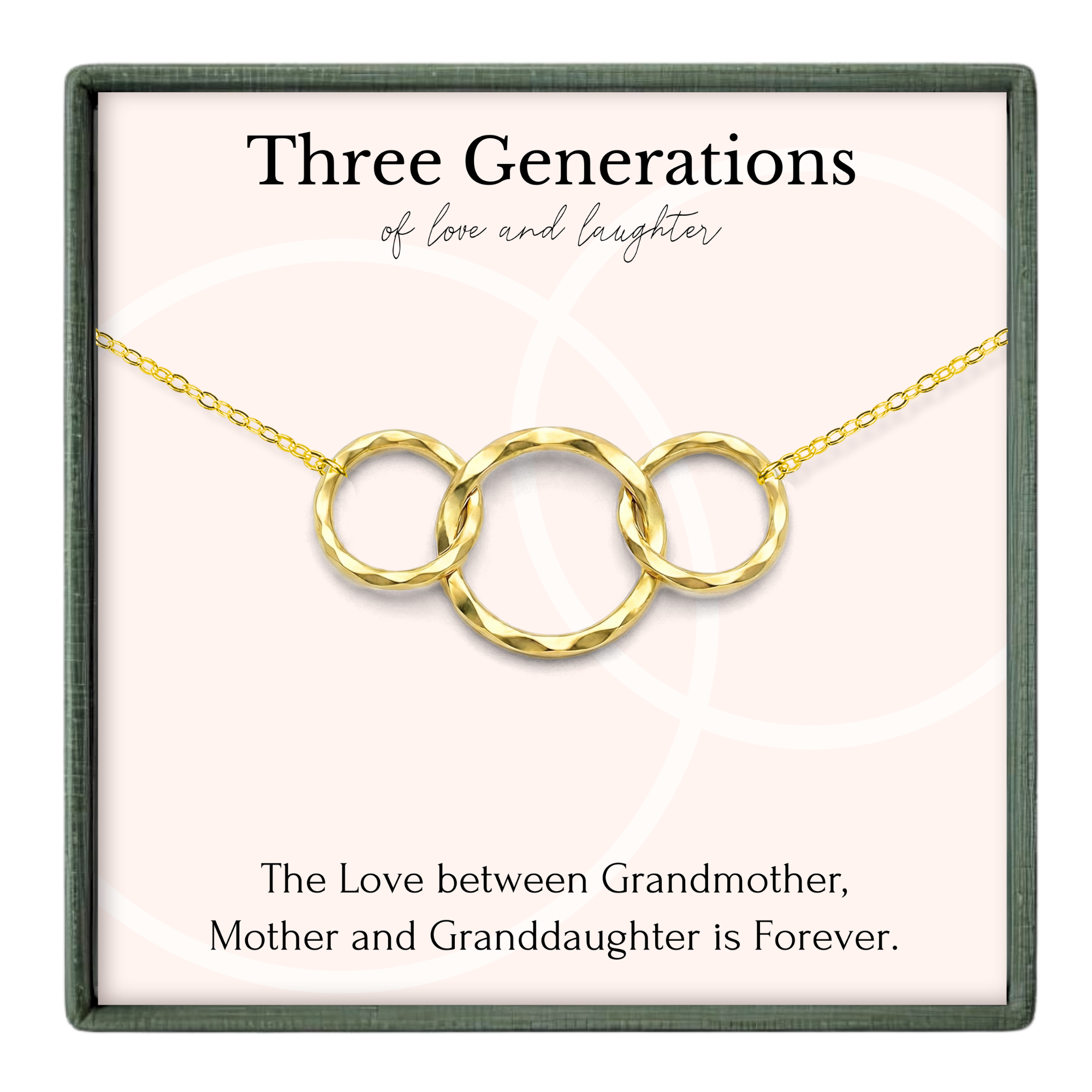 The love between you, your mother and grandmother is one that spans generations. Symbolize this special bond with a stunning three ring necklace.  Beautifully packaged with a meaningful message, this is a gift that will stay close to your heart.