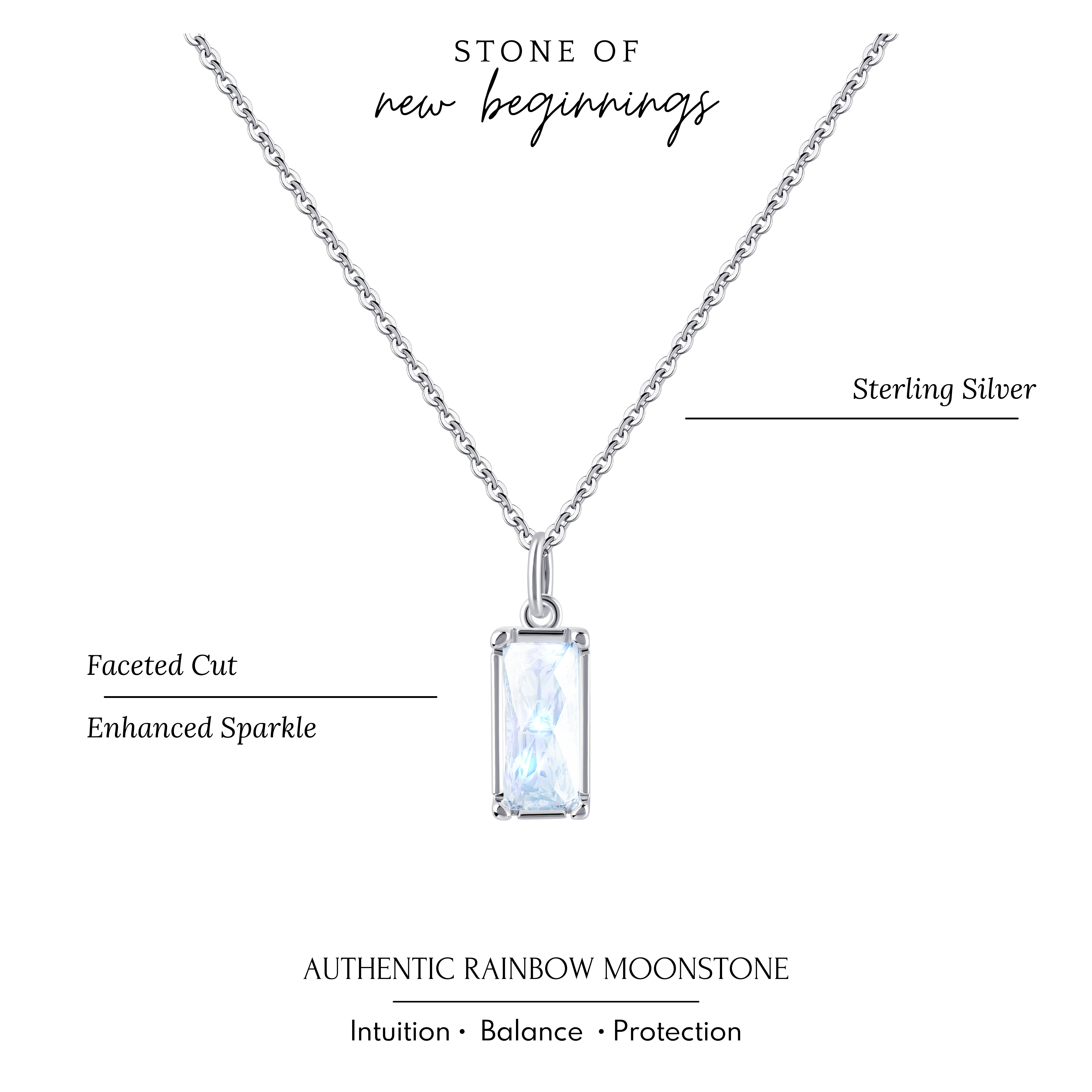 Experience the ethereal beauty and healing energy of our "Hope Love Shine" Rainbow Moonstone Necklace. Handcrafted with love, this dainty sterling silver necklace features a faceted rainbow moonstone, symbolizing strength and new beginnings. Whether as a fertility gift, strength jewelry, or a token of friendship, its radiant glow uplifts spirits. Perfect for Valentine's Day, Mother's Day, or offering solace during times of miscarriage or infertility, this stunning moonstone necklace is a meaningful and sentimental gift for anyone embarking on a journey of hope and resilience.