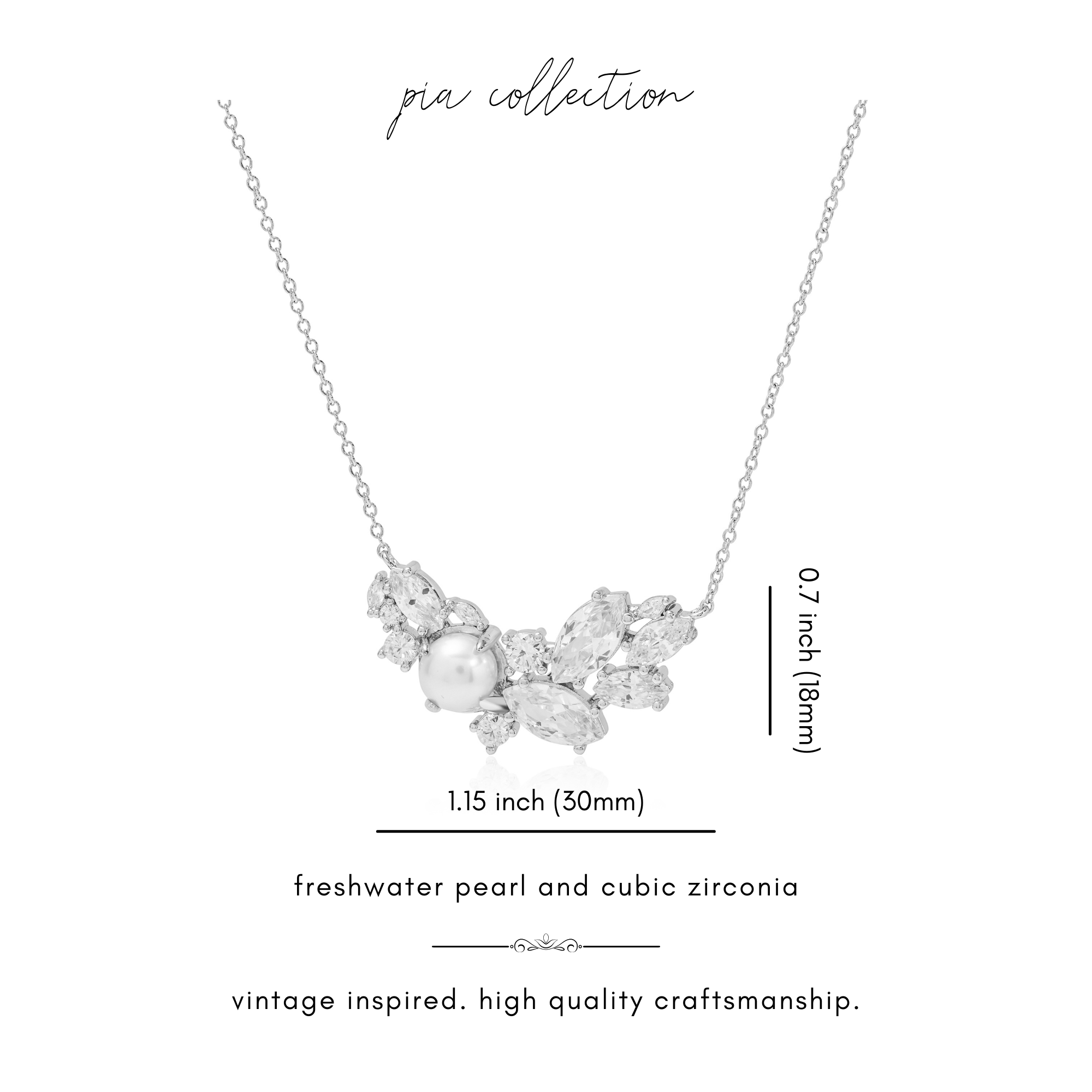 - Pearl and Crystal pendant is sterling silver plated brass (lead and nickel free), and measures 1.15" in width and 0.7" in height.