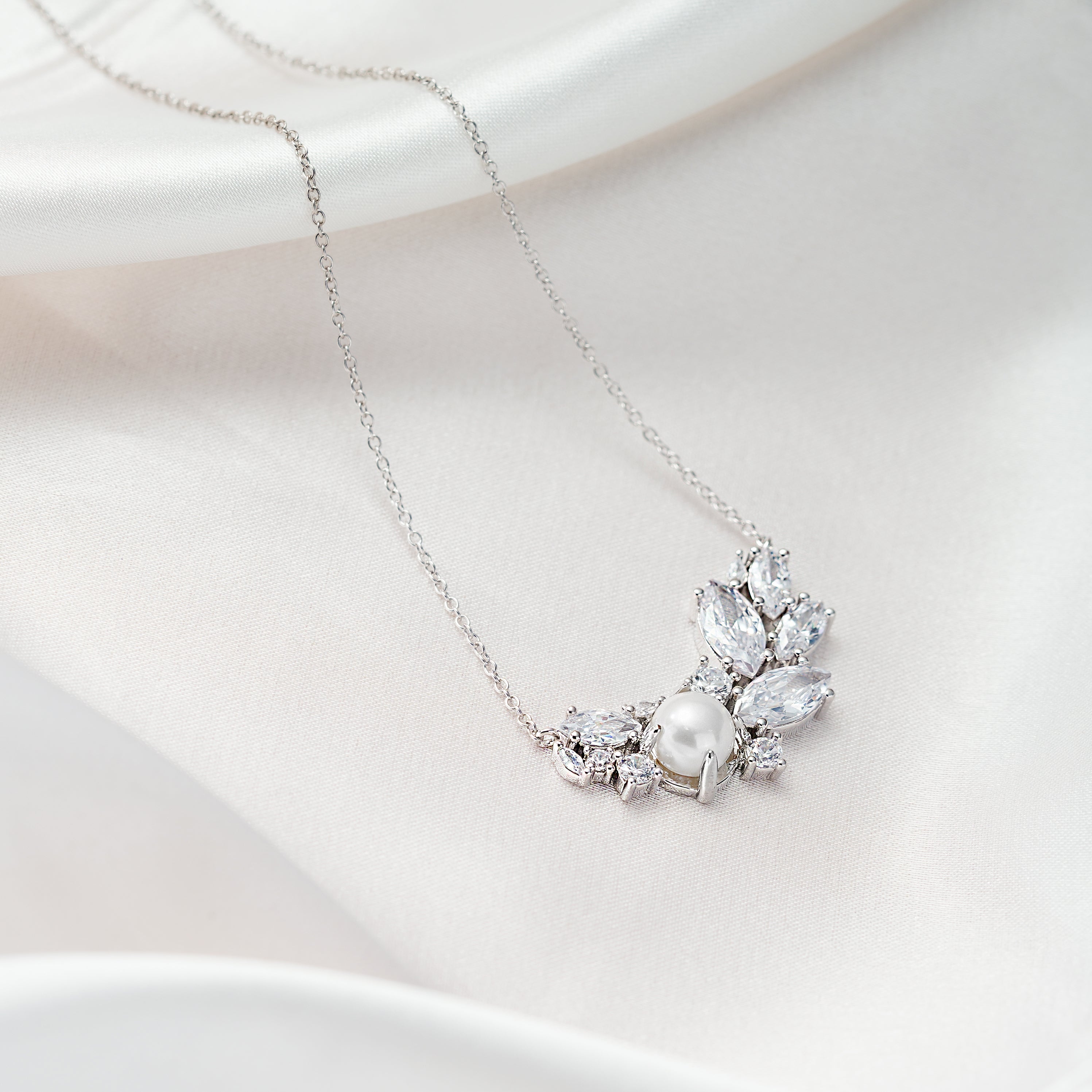 - Pearl and Crystal pendant is sterling silver plated brass (lead and nickel free), and measures 1.15" in width and 0.7" in height.