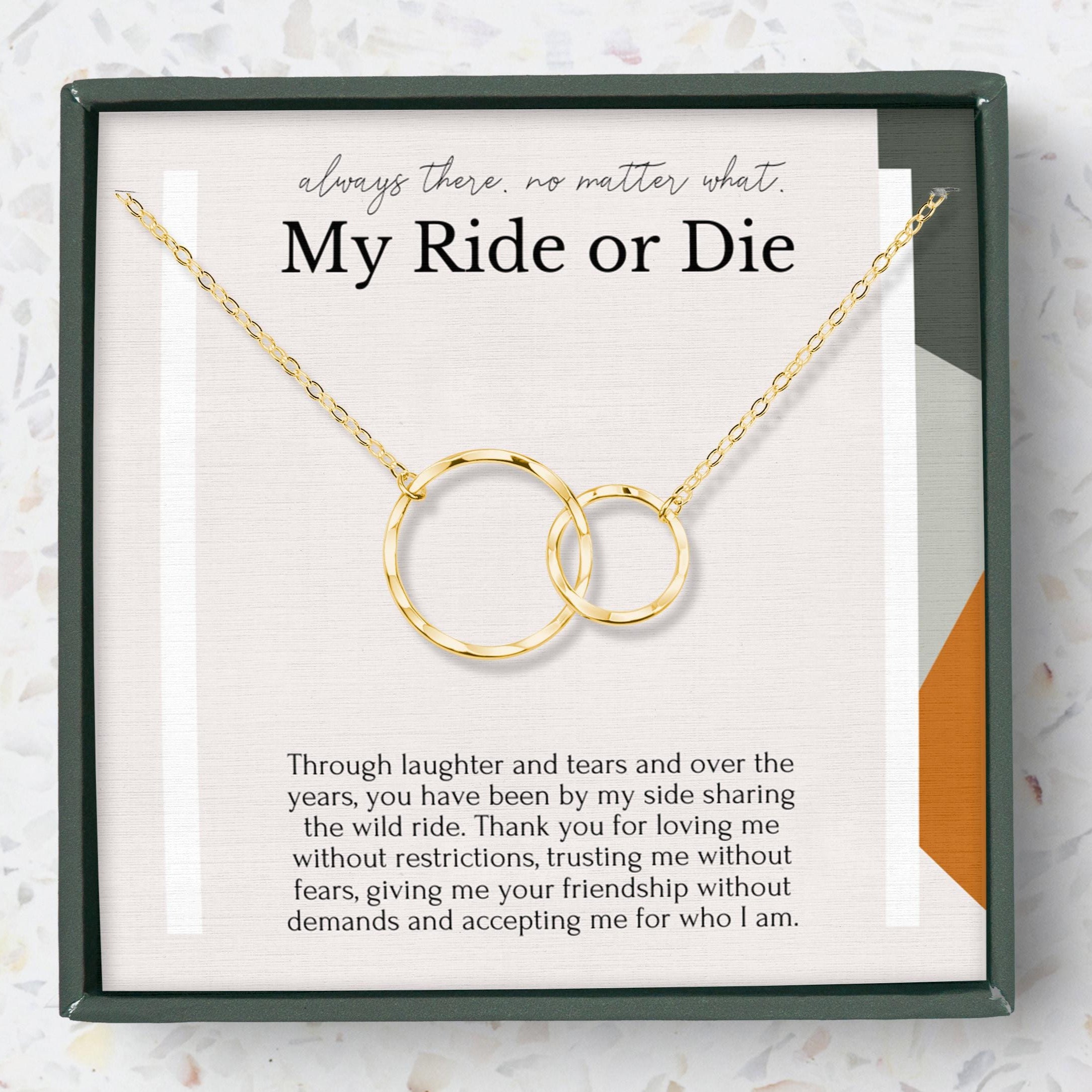 Your ride or die has your back no matter what. Let her know you feel the same with this stunning interlocking circles necklace. Beautifully packaged with a meaningful message, this is a gift she will surely hold close to her heart.