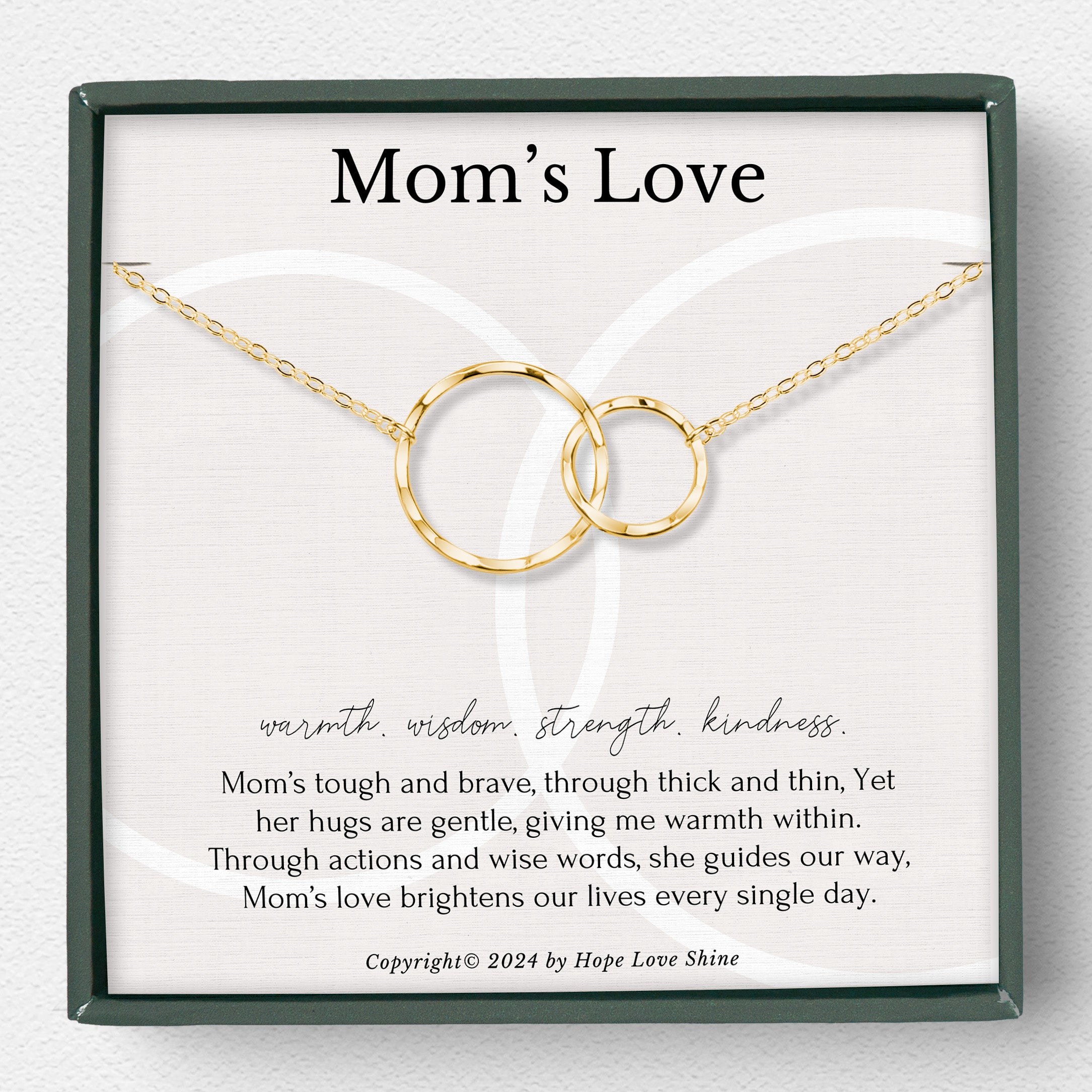 💖 Celebrate the Strength & Warmth of a Mother’s Love with this elegant Mom’s Love Necklace. Featuring two interlocking circles, this necklace symbolizes the unbreakable bond between you and your mother—endless, strong, and filled with love.
